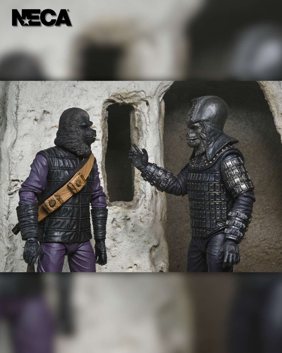 From 2014-2015, NECA released an excellent series of figures based on the classic (as well as the modern) Planet of the Apes movies. there were two assortments released, along with a 2-pack, a few 8″ clothed figures, and a lawgiver statue. There were multiple releases planned beyond the first two waves, but the series was ultimately cancelled before those items were released. Ten years after that first assortment was released, NECA has announced they are reissuing an assortment of The Planet of the Apes 7″ Scale Figures! The Planet of the Apes Legacy Series will include four figures: