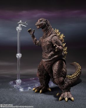Colors are inspired by the original film poster.By exchanging hand parts, this Godzilla can hold an airplane which is attached as a bonus part. By also adding heat ray effect part so you can recreate the original film poster!