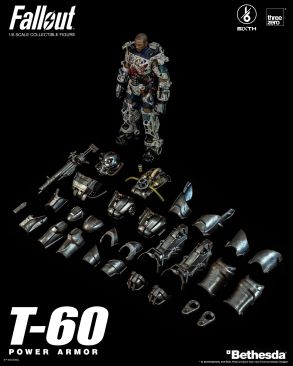 A new variation of the Power Armor from the Fallout videogame series has been revealed by ThreeZero. Pre-orders have been opened for the T-60 Power Armor 1/6 Scale Figure. The figure features an endoskeleton frame with 35 points of articulation. Each piece of the armor is interchangeable with previous ThreeZero Power Armor releases. The helmet has a LED light up function, and the figure includes a male head sculpt, and an assault rifle with interchangeable magazines, and a removable scope.