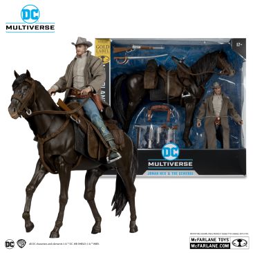 The exclusive Jonah Hex and horsie 2 pack is live now over on McFarlaneToysStore.com. Accessories include tomahawk, rifle, 2 revolvers, knife, sword, 2 interchangeable belts with holsters and figure base. Retail is $69.99 with a ship date of September 2024. Read on for pics and deets, hit the link to snag em.