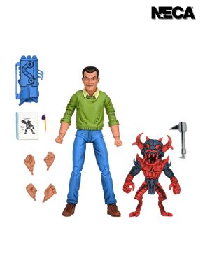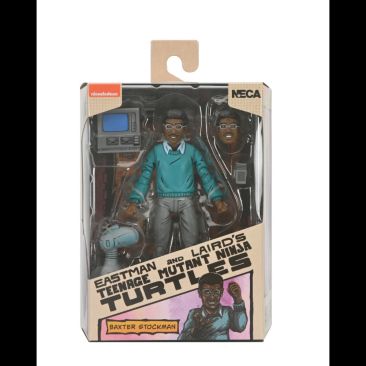At last, the master of mechanical madness arrives in action figure form. From the Mirage Comics Teenage Mutant Ninja Turtles series, NECA presents the original Baxter Stockman: evil genius or precocious programmer gone mad in pursuit of a petty pipe dream? This 7-inch scale action figure features comic accurate deco and comes with all new mouser, computer, miniature building, plus extra hands and heads for perilous plug-and-play plundering. Window box packaging featuring new artwork by TMNT Co-Creator Kevin Eastman.