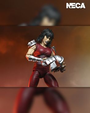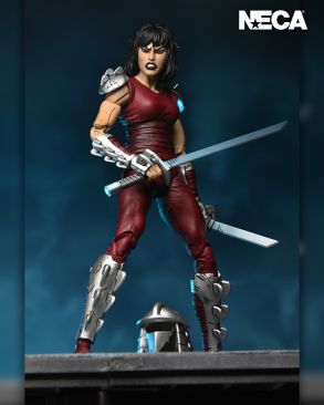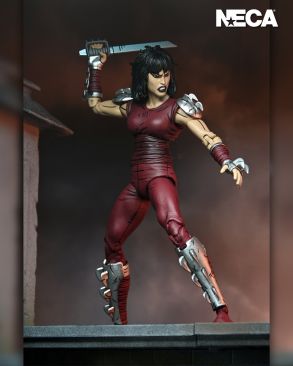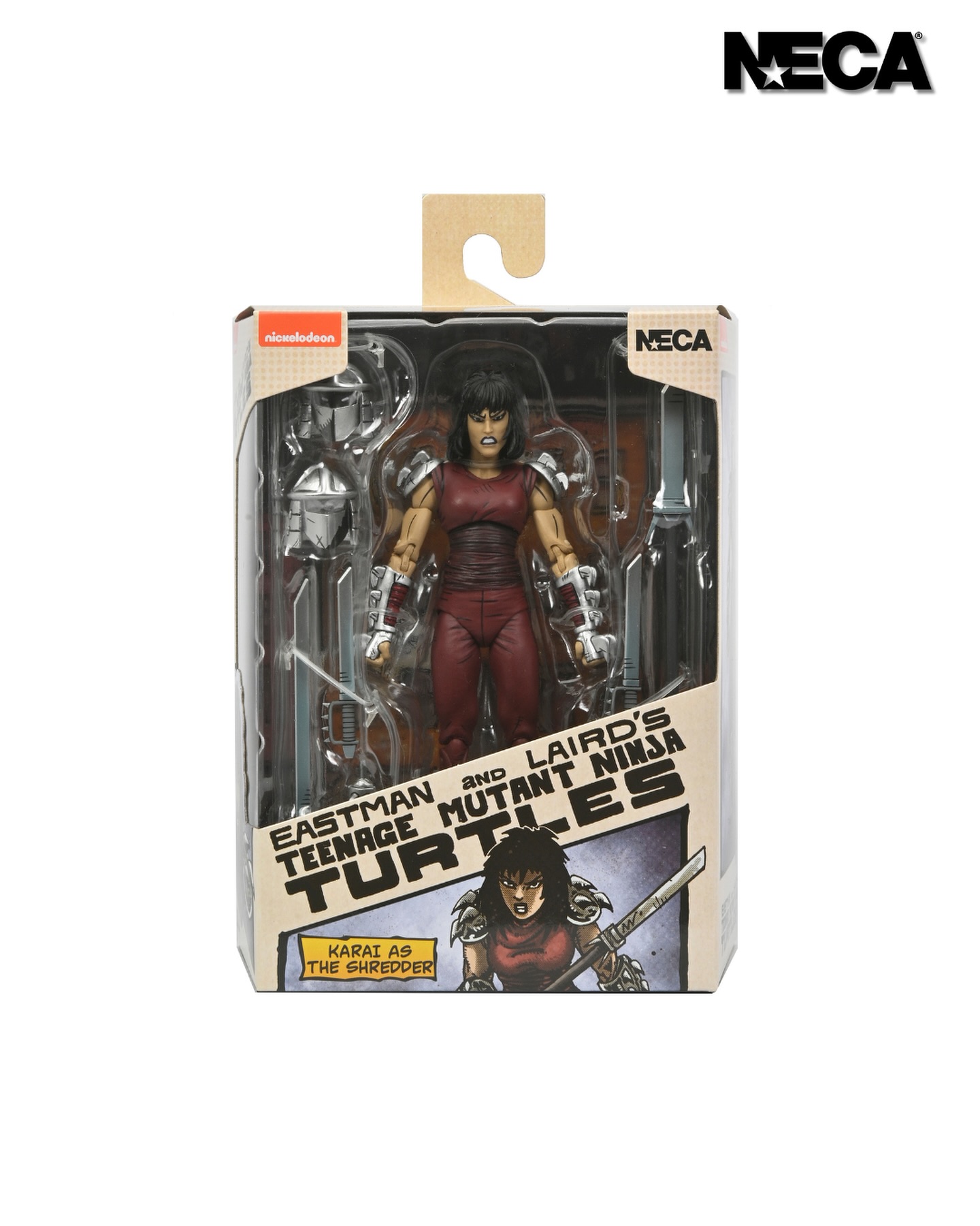 Based on the original Eastman & Laird Teenage Mutant Ninja Turtles comic books from Mirage Studios! As seen in the “City at War” storyline, Karai, the new leader of the Foot Clan, is both a fearsome foe and uneasy ally to the Turtles. This 7-inch scale NECA action figure includes masked and unmasked heads, extra hands, and deadly ninja weapons! Comes in collector-friendly packaging with original box art by Kevin Eastman.