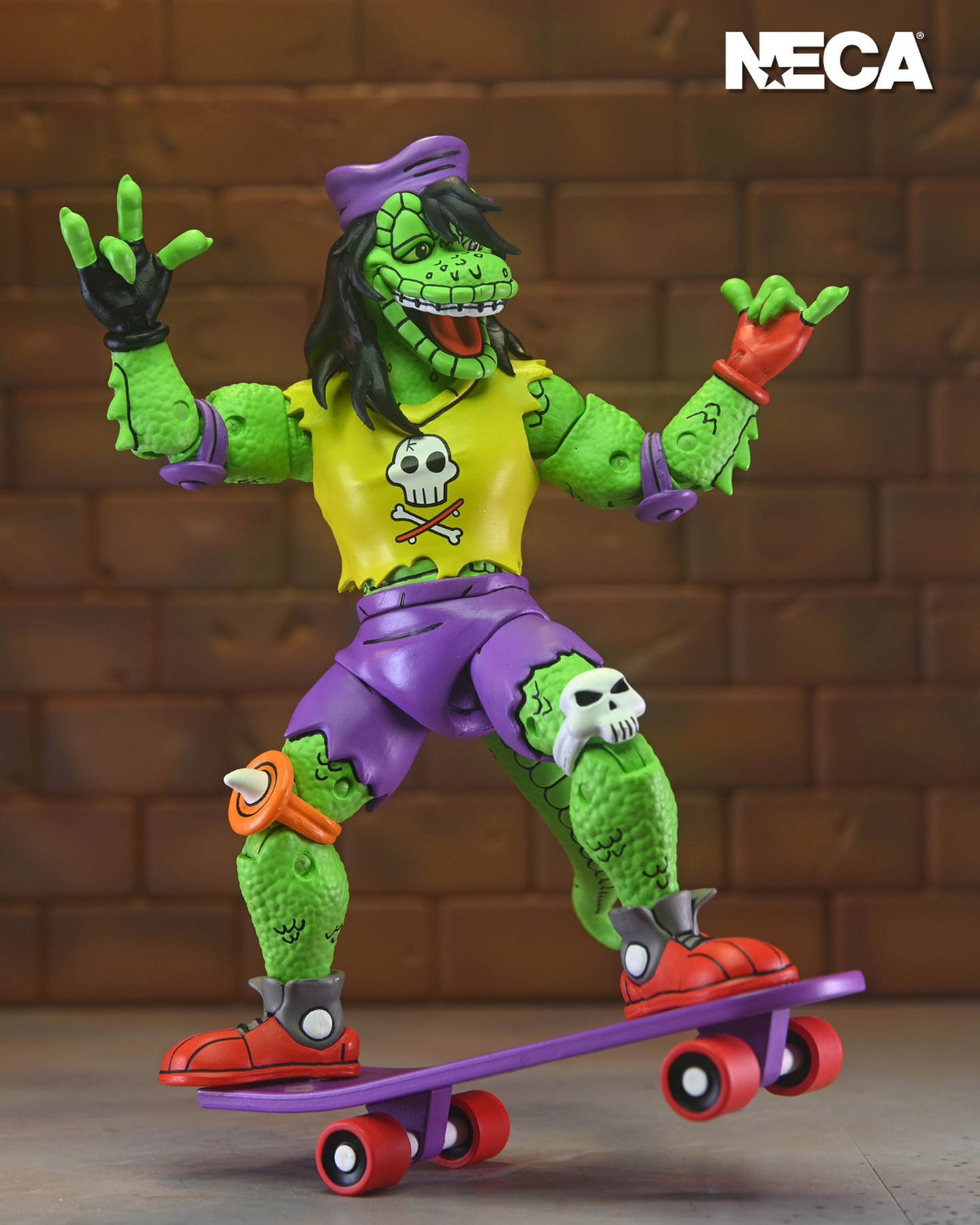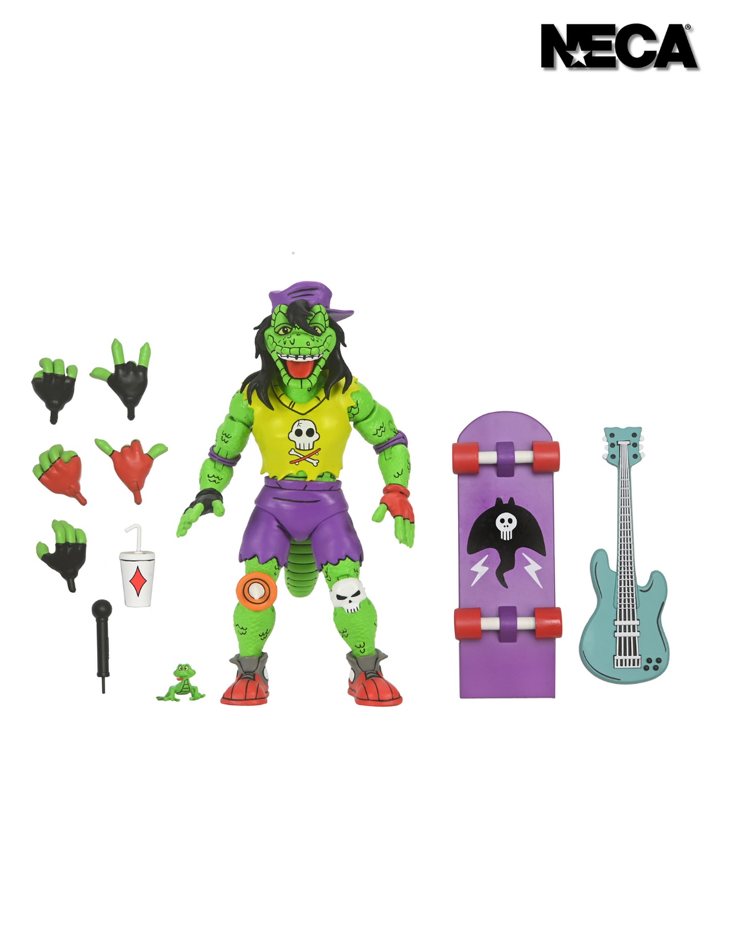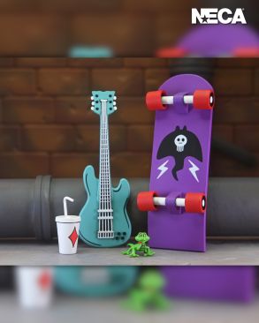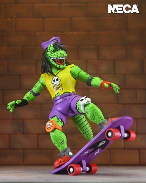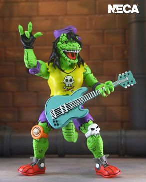 It’s the definitive Mondo Gecko for your TMNT collection! This action figure is straight from the pages of Eastman and Laird’s Teenage Mutant Ninja Turtles Adventures comic book series from Archie Comics! Mondo Gecko has left the music biz to join the Turtles in their pursuit to do good! This Mighty Mutanimal comes with a load of accessories, including extra hands, skateboard, guitar, pet gecko, soda cup, and microphone! Comes in collector-friendly window box packaging and features all-new illustrations by original TMNT comic book artist Ken Mitchroney.