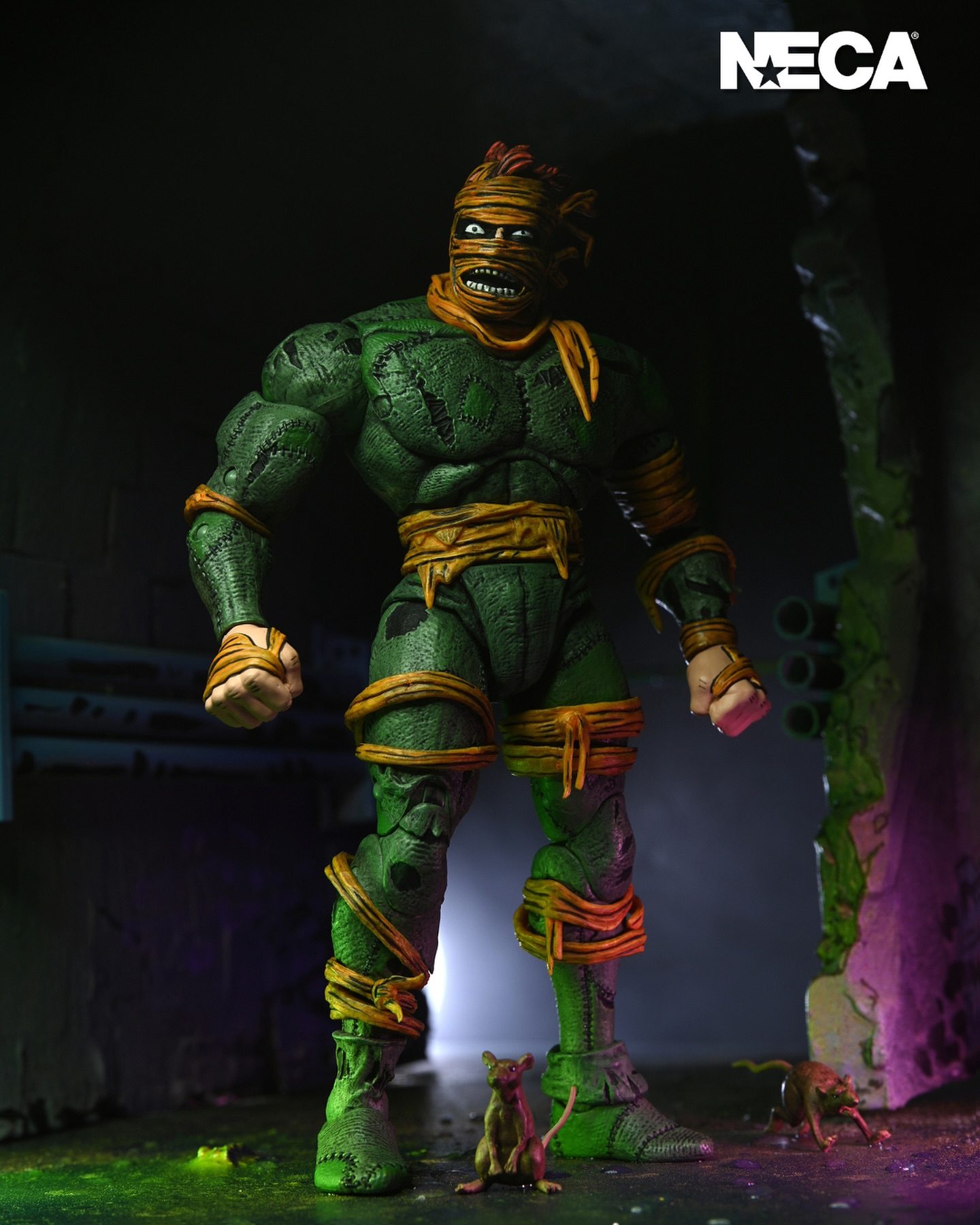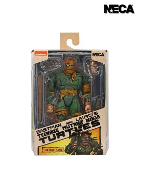 Enter the Rat King! Based on the classic Teenage Mutant Ninja Turtles comic books from Mirage by Kevin Eastman and Peter Laird, this iconic antagonist is ready to join your NECA action figure collection! Standing in 7-inch scale, this rodent overlord includes two different heads to capture different looks, removable leg wraps, regular hands, monster hands, pet rat accessories, and a stick! Comes in collector-friendly packaging with original box art by Kevin Eastman.