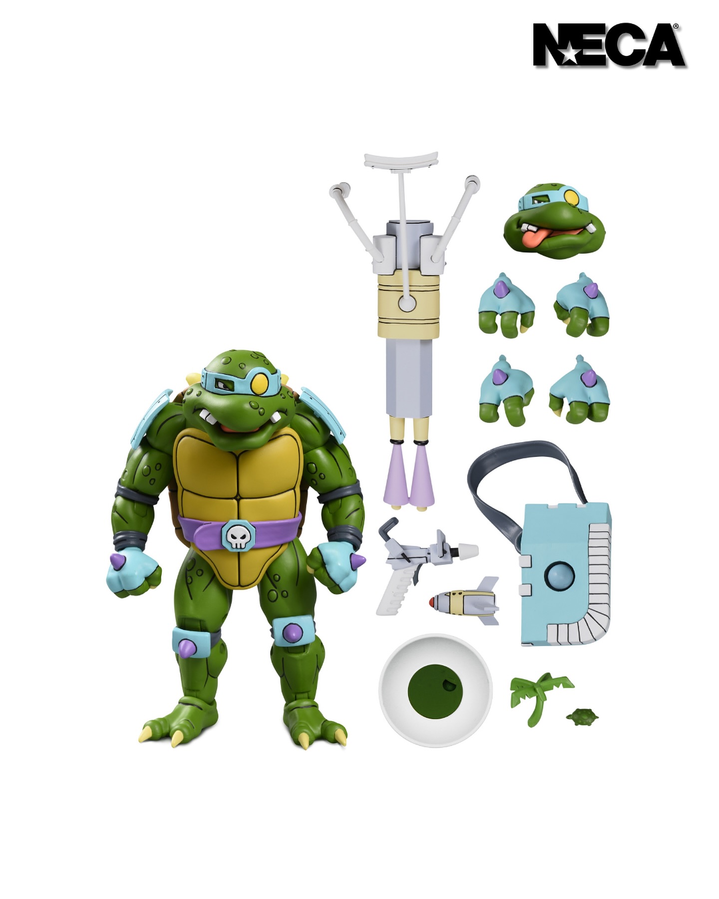 Based on the classic 1980s Teenage Mutant Ninja Turtles cartoon series! The evil mutant turtle Slash is getting NECA’s Ultimate treatment! This 7-inch scale action figure includes all-new head sculpts with different expressions, extra hands, his beloved “Binky” (plastic palm tree), and an all-new arsenal of ray guns and other dastardly devices! Comes in collector-friendly Ultimate packaging with VHS homage box art.