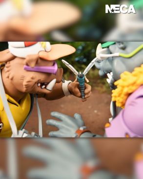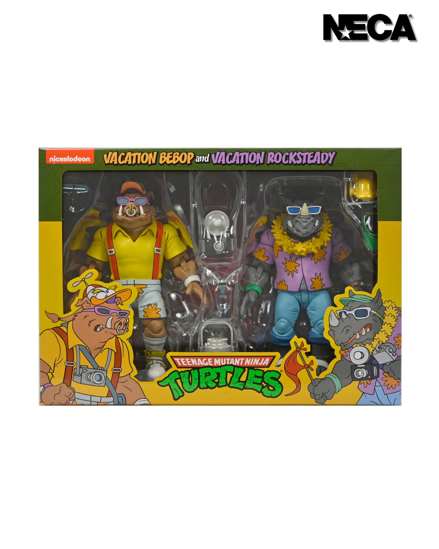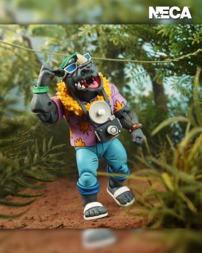 Based on the classic 1980s Teenage Mutant Ninja Turtles cartoon series! Now you can add Vacation Bebop and Rocksteady, as seen in the episode “Napoleon Bonafrog: Colossus of the Swamps,” to your TMNT collection! Standing in 7-inch scale, both NECA action figures feature hinged jaws and come with extra hands. Other accessories include a mutant dragonfly buddy, cameras, travel bags, and excitement galore! It’s the perfect companion piece to our Colossus Napoleon Bonafrog figure (sold separately). Comes in collector-friendly window box packaging.