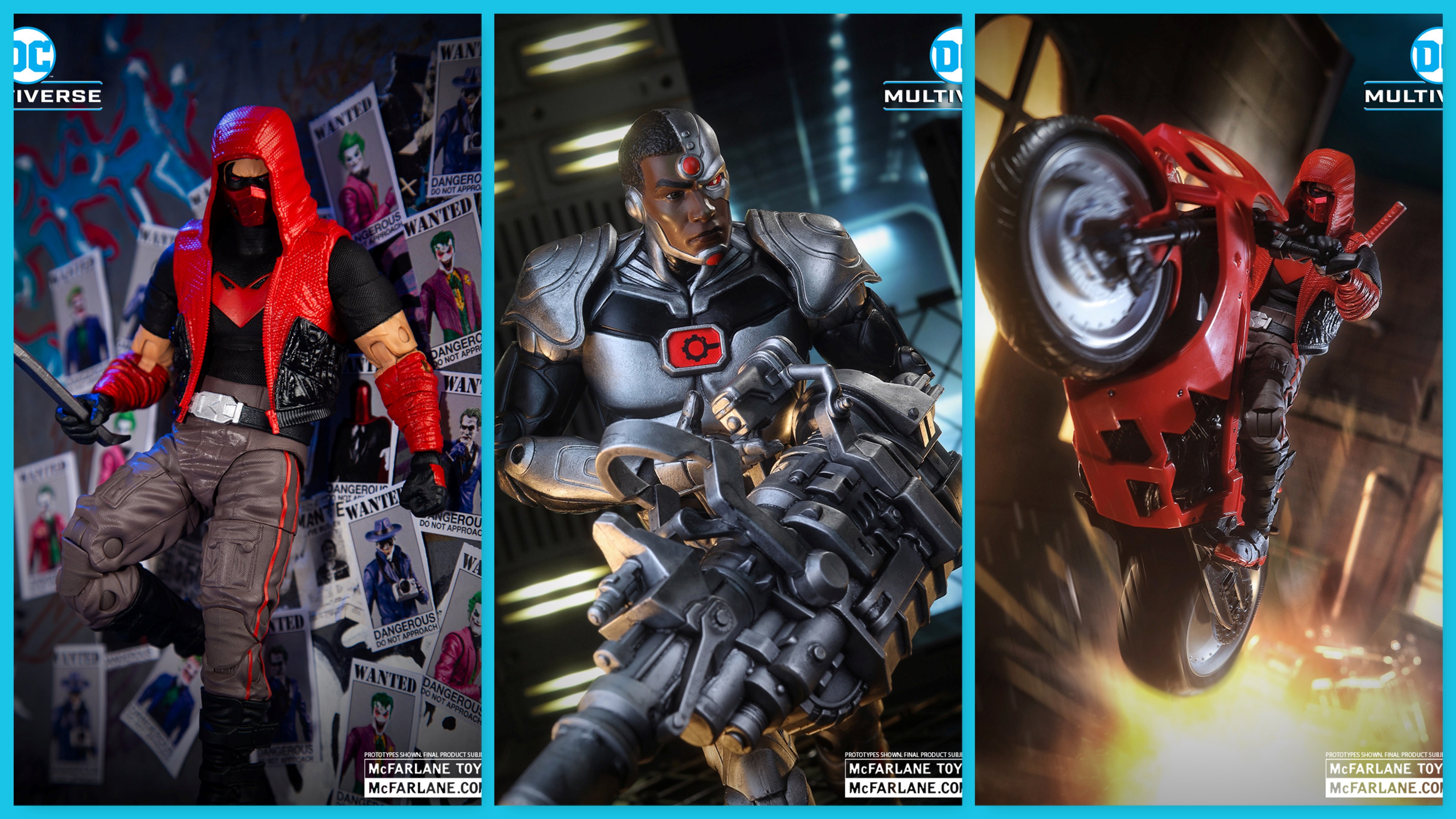 Several new DC Multiverse mainline teasers from McFarlane Toys today. These are set to go live tomorrow at Noon eastern, so prep your jets. Red Hood is based on his modern Dawn of DC look, Cyborg is based on his Rebirth look. Plus, Red Hood Bike! Stay tuned for full drop info.
