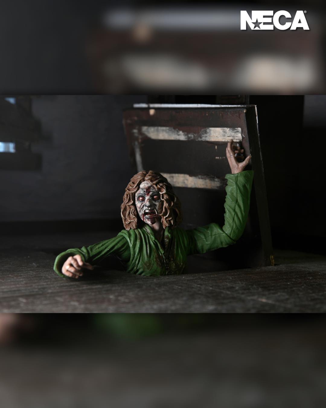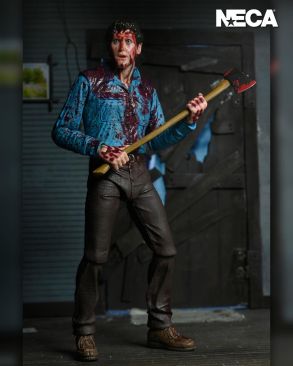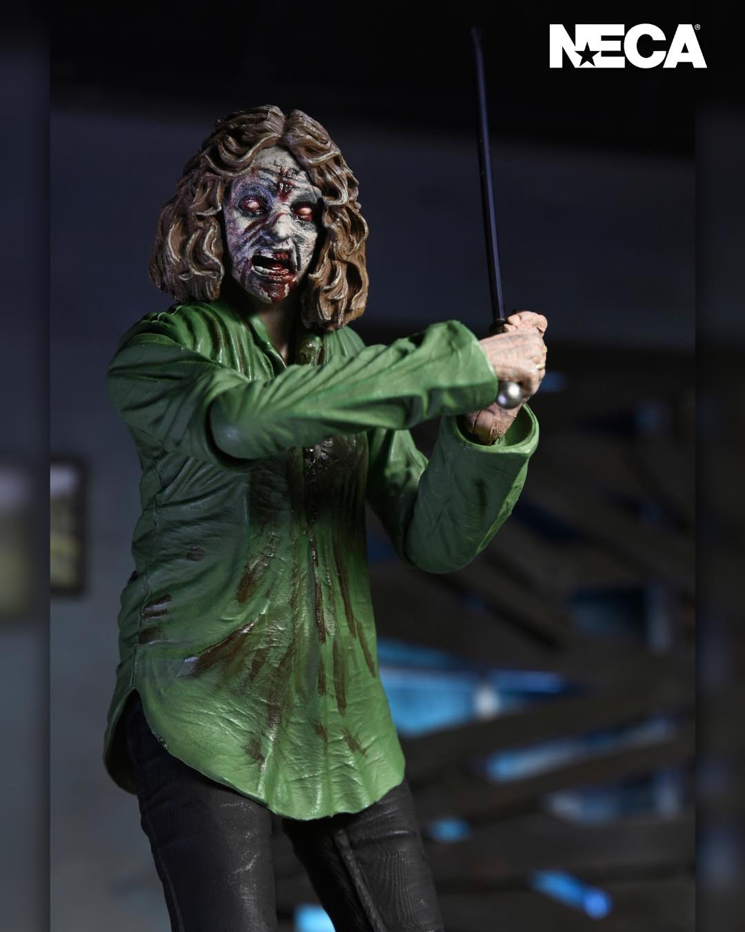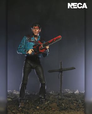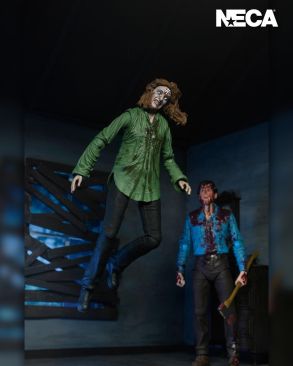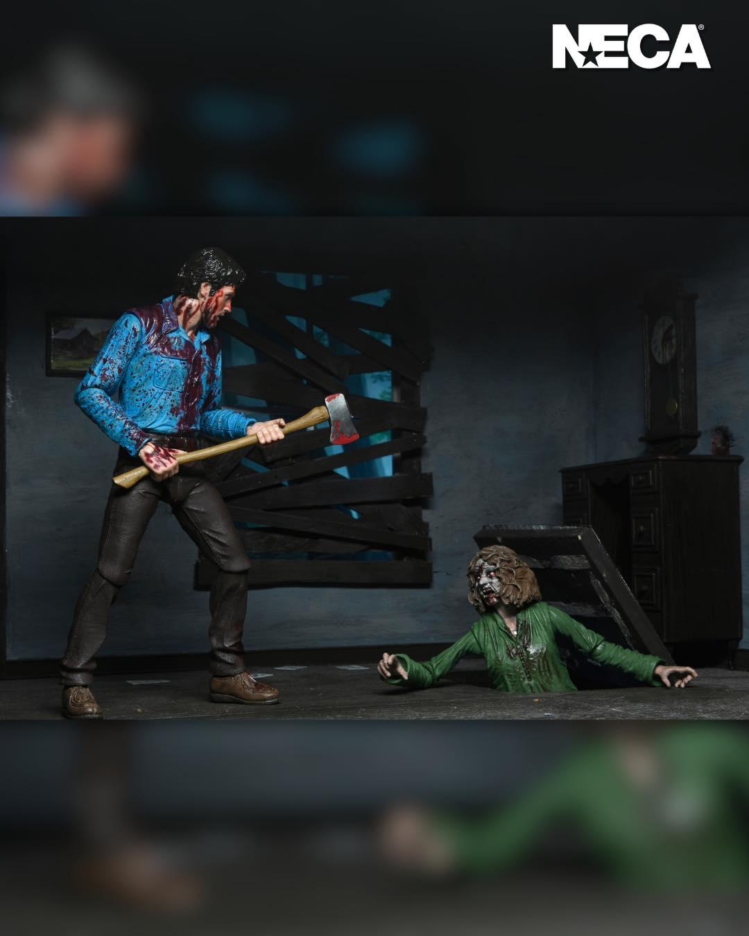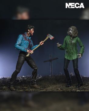 Celebrate the original Evil Dead film that started it all! From the demonically fun 1981 Sam Raimi horror classic, The Evil Dead, NECA presents an action figure two-pack featuring bloody Ash Williams and his possessed sister, Cheryl—for the first time in action figure form! Standing in 7-inch scale, both figures are fully poseable and come with interchangeable heads and hands, including Cheryl’s hand holding a pencil and her heads in various states of decay seen throughout the film. Other accessories include bloody chainsaw, axe, shovel, fire poker, sketch pad with clock drawing and Necronomicon drawing parts, and cross grave marker. Comes in collector-friendly, five-panel window box packaging.