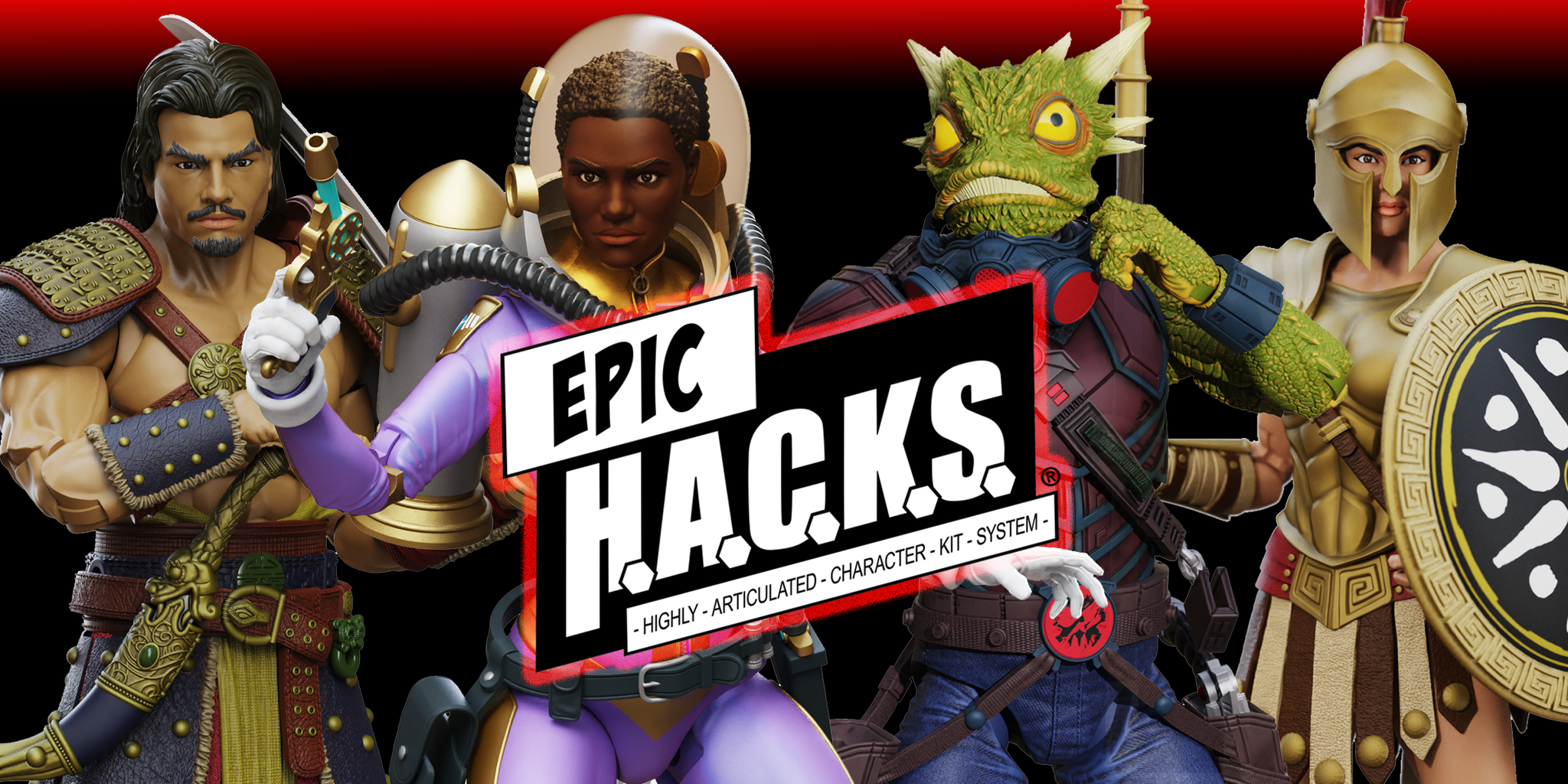 Epic H.A.C.K.S. is a 1/12 scale action figure line with 30+ points of articulation and tons of interchangeable parts! Core Wave 1 consists of four incredible heroes and villains from throughout the time stream. Each can be customized with other Epic H.A.C.K.S. products to HACK your collection!