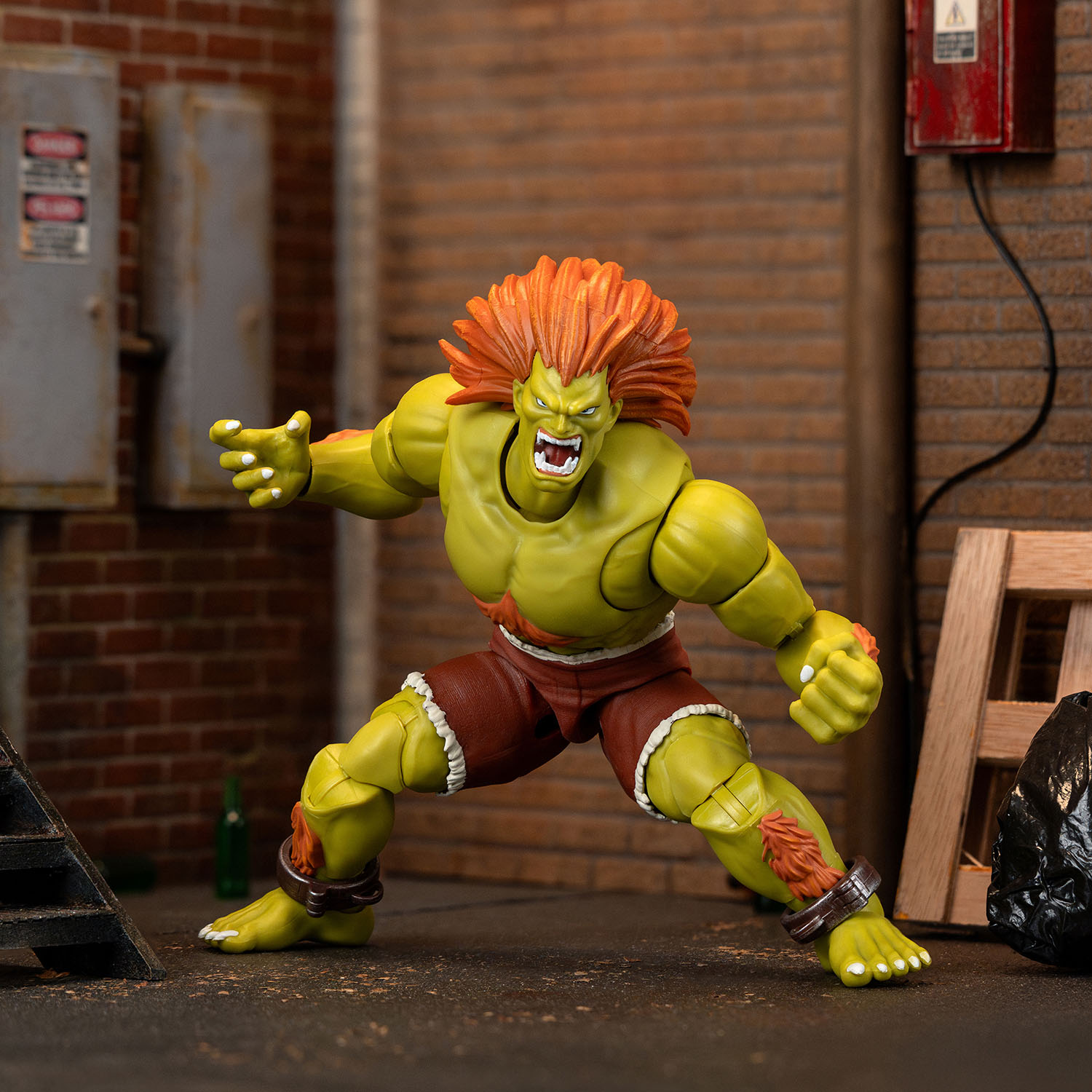 This 1:12 scale action figure is expertly crafted to capture Blanka’s primal energy and unique fighting style. With remarkable articulation, you can recreate his most memorable moves from the game, including his devastating Rolling Attack, his electrifying Electric Thunder and his iconic Beast Mode poses. This set includes interchangeable heads, hands and Electric Thunder effect pieces. His fierce presence is ready to bring chaos to your collection.