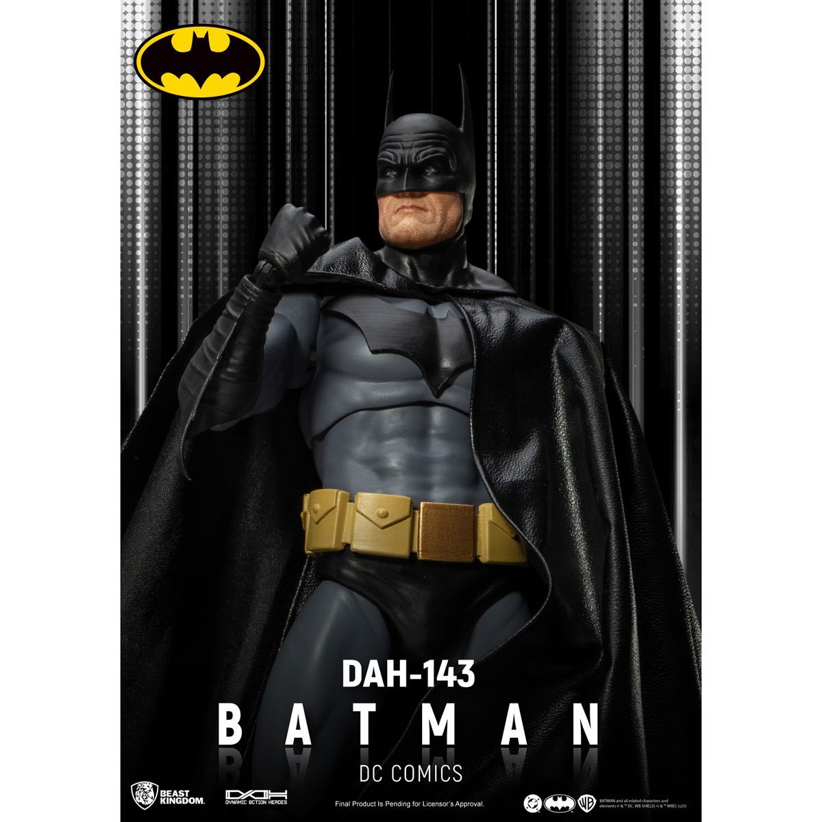 Beast Kingdom presents the DC Comics Batman DAH-143 Dynamic 8-Ction Heroes Action Figure! One of DC’s most iconic heroes, Batman fights Gotham’s darkness without superpowers, relying on intelligence, wealth, and unrivaled combat skills to become the ultimate vigilante. The DAH-143 figure captures Batman’s intense stare beneath his cowl, with detailed sculpting of facial texture and muscular physique. Dressed in a gray battle suit with a yellow utility belt, black gloves, boots, and a premium fabric cape with inner wire for dynamic posing. Includes 22 points of articulation and 5x interchangeable hands (fists, hand blade, item-holding, weapon-holding, relaxed) to recreate signature stances and fight scenes. A definitive collectible for Batman fans. This figure measures approximately 8-inches tall.