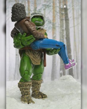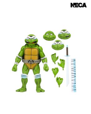 As seen in the Winter 1994 special issue of Eastman and Laird’s Teenage Mutant Ninja Turtles Adventures comic book series from Archie Comics! Who is the mysterious fifth Turtle? Why, it’s none other than April O’Neil! This 7-inch scale NECA action figure features a sword, sheath, and multiple heads and hands for limitless display possibilities! Comes in collector-friendly packaging with artwork by original TMNT Adventures artist Ken Mitchroney.