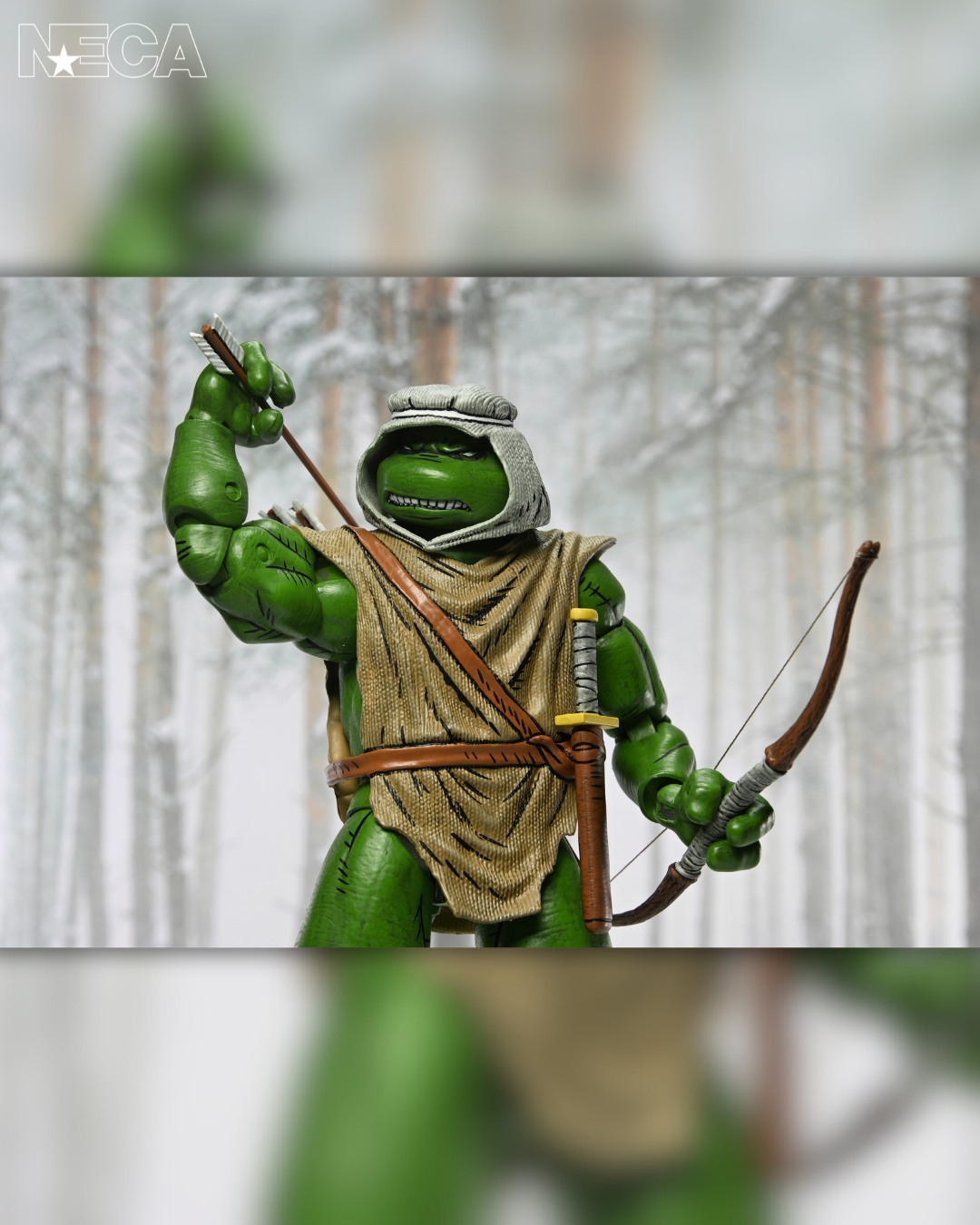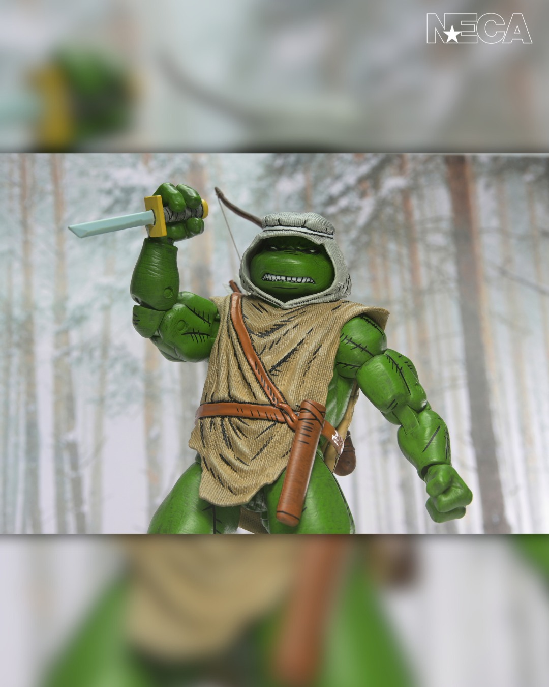 As seen in Eastman & Laird’s original Teenage Mutant Ninja Turtles comics from Mirage Studios! Based on his appearance in issue #11, Hunter Leonardo is ready to join your collection! Standing in 7-inch scale, this NECA action figure includes bow and arrows, quiver, sword, and knife. Comes in collector-friendly packaging with artwork by Kevin Eastman.