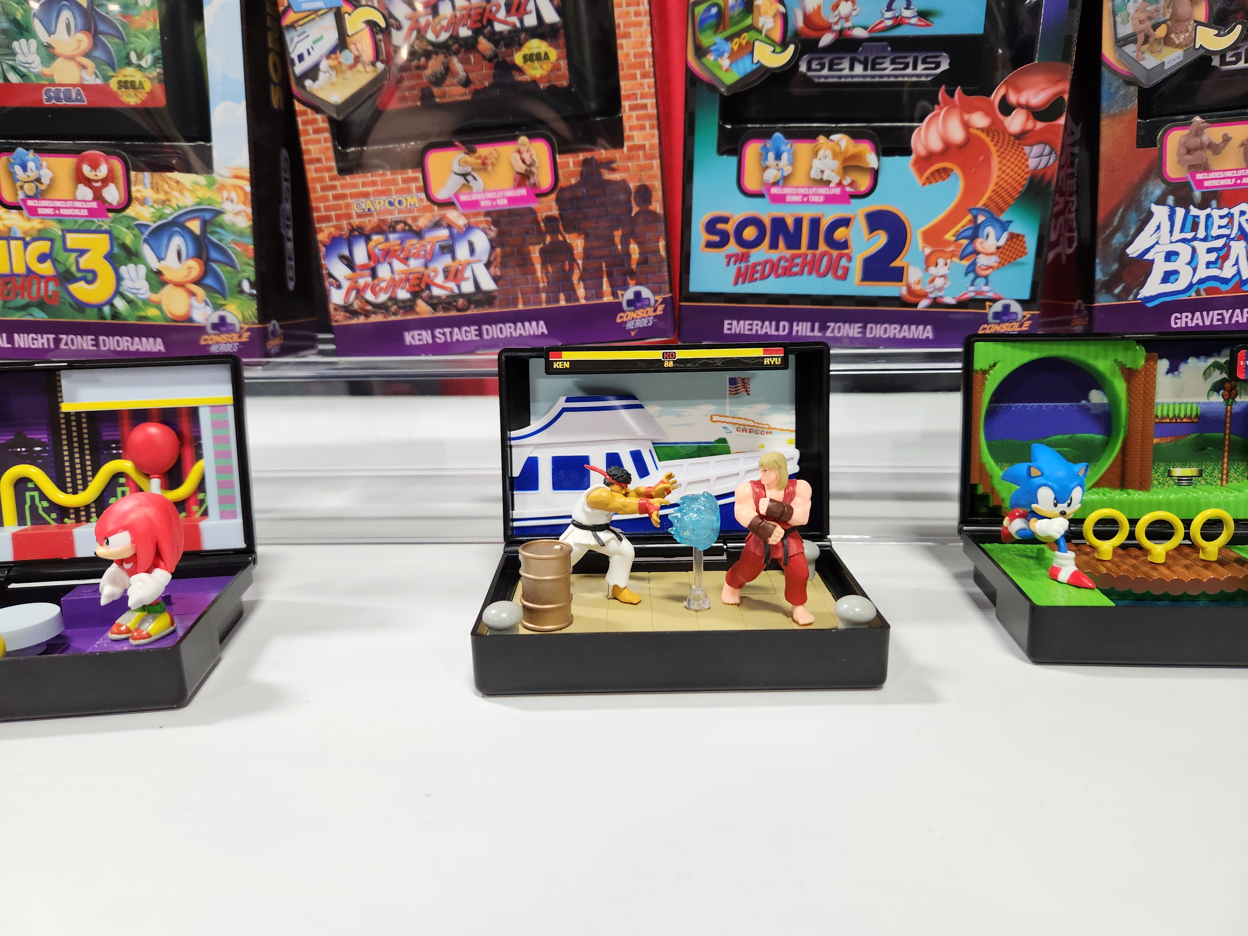 The new Console Heroes – Sega Genesis Cartridge Dioramas are making their full retail debut at video game convention “Too Many Games”. At the show, they are selling the first assortment. Each cart is modeled after a classic Sega Genesis game, and opens up to reveal a Diorama based on the game. Included are:
