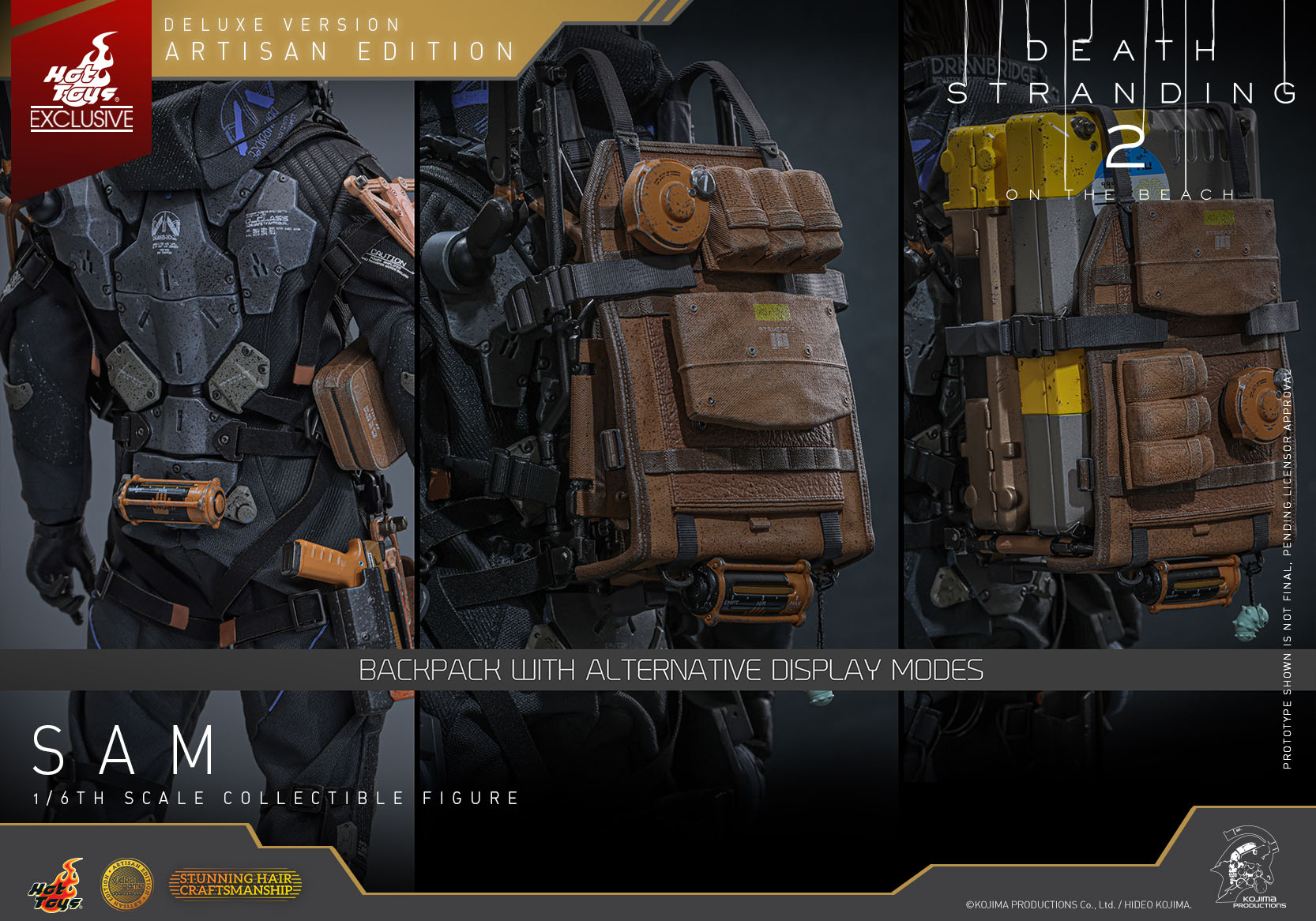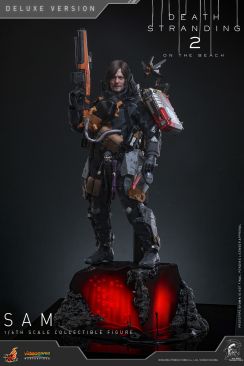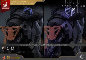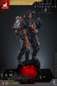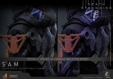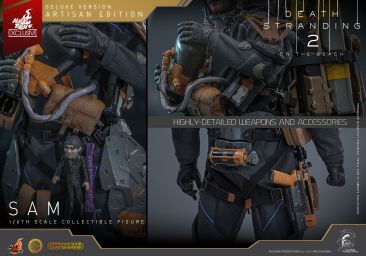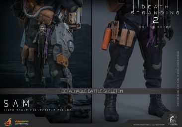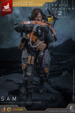 Hot Toys proudly introduces the 1/6th scale Sam Collectible Figure (Deluxe Version) — an upgraded version overflowing with additional accessories and enhanced display options. Just like the Regular version, this figure features a head sculpt with rolling eyeballs and meticulously crafted dark brown hair, a Drawbridge suit with UV luminous reflective effect, full-body utility harness, detachable Battle Skeleton, back armor with Odradek scanner, and transporter boots — all weathered for worn realism.