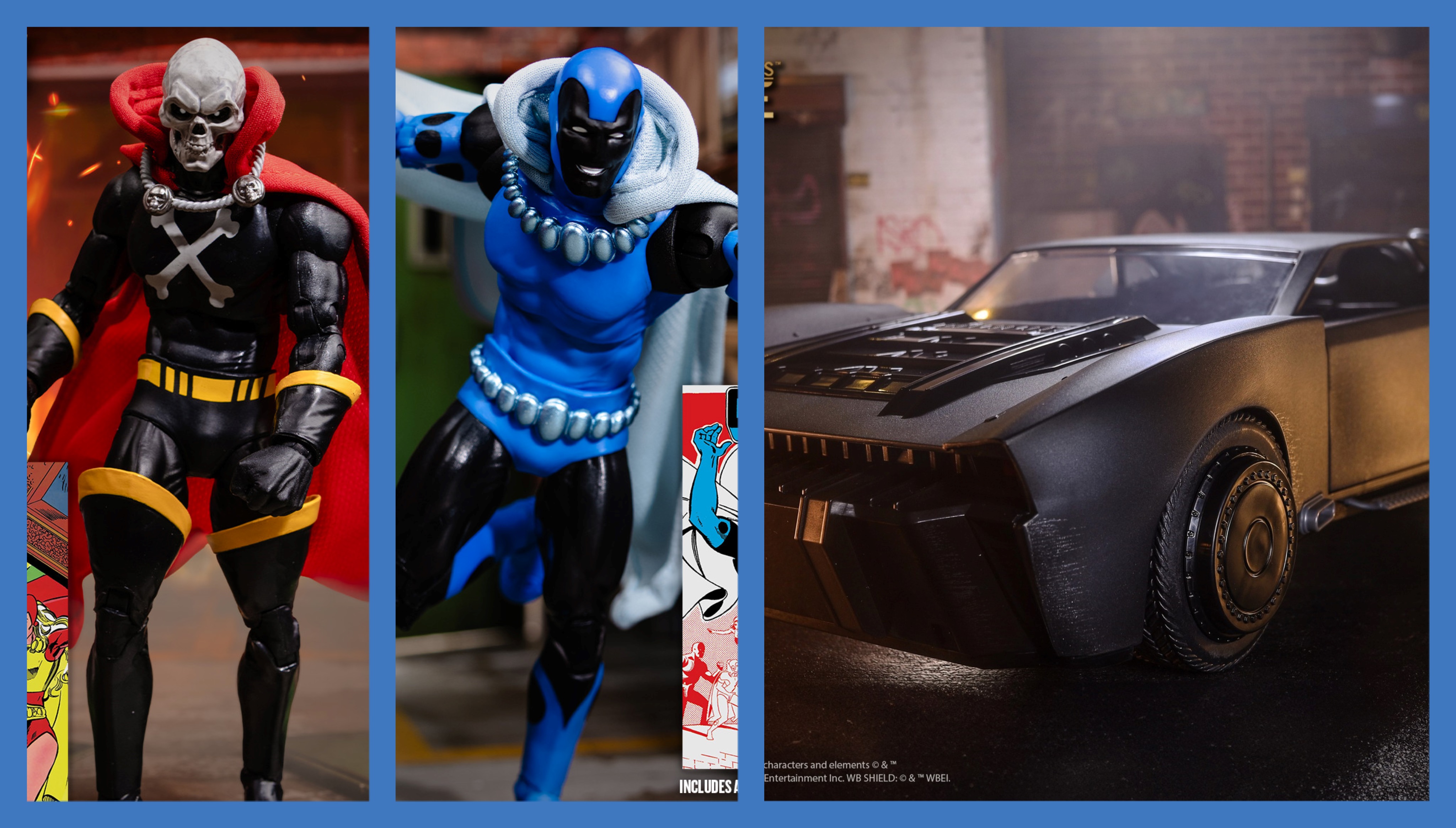McFarlane Toys have dropped teasers for some upcoming DC Multiverse Gold Label items, set to drop this week. Mr. Bones & Obsidian from Infinity Inc will be dropping on Thursday Aug 15th, while The Batman (movie) Batmobile will drop this Wednesday the 14th. All are McFarlane Toys Store exclusives. Read on for some pics, check back for linkage.