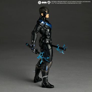 A new DC video game figure is going up for pre-order from Kaiyodo. As part of their Amazing Yamaguchi Revoltech series comes Nightwing from the Batman: Arkham Knight video game. The 6″ scale figure includes swap out faces, multiple interchangeable hands, assorted Escrima Sticks, as well as other accessories and a display stand. For fans who order directly from the Kaiyodo Shop, an additional swap out face will be included. The figure is scheduled for release in July 2026.