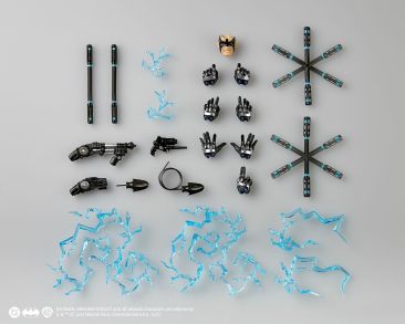 In Amazing Yamaguchi, such a high-tech suit figure is three-dimensionalized with light action by unique movable gimmicks. In addition to the voice synthesizer at the mouth and a grappel gun that can reproduce the firing state by changing the tip, the fighting weapon “Escrima Stick” and a stick that reproduces the rotational state are also included. In addition, a large number of electric shock effect parts allow you to reproduce powerful action scenes, such as sparks that scatter from sticks and damage to enemies.