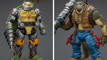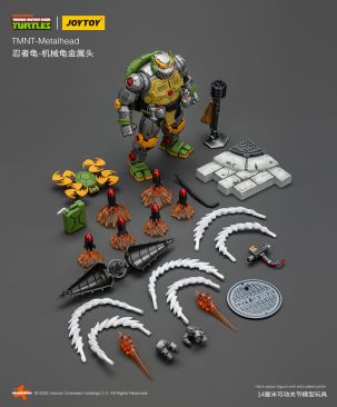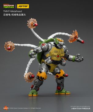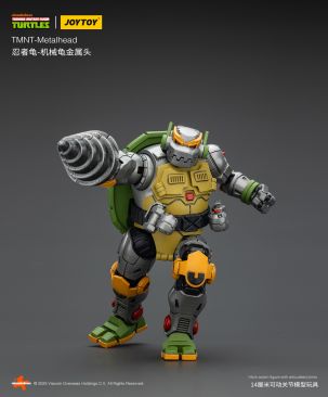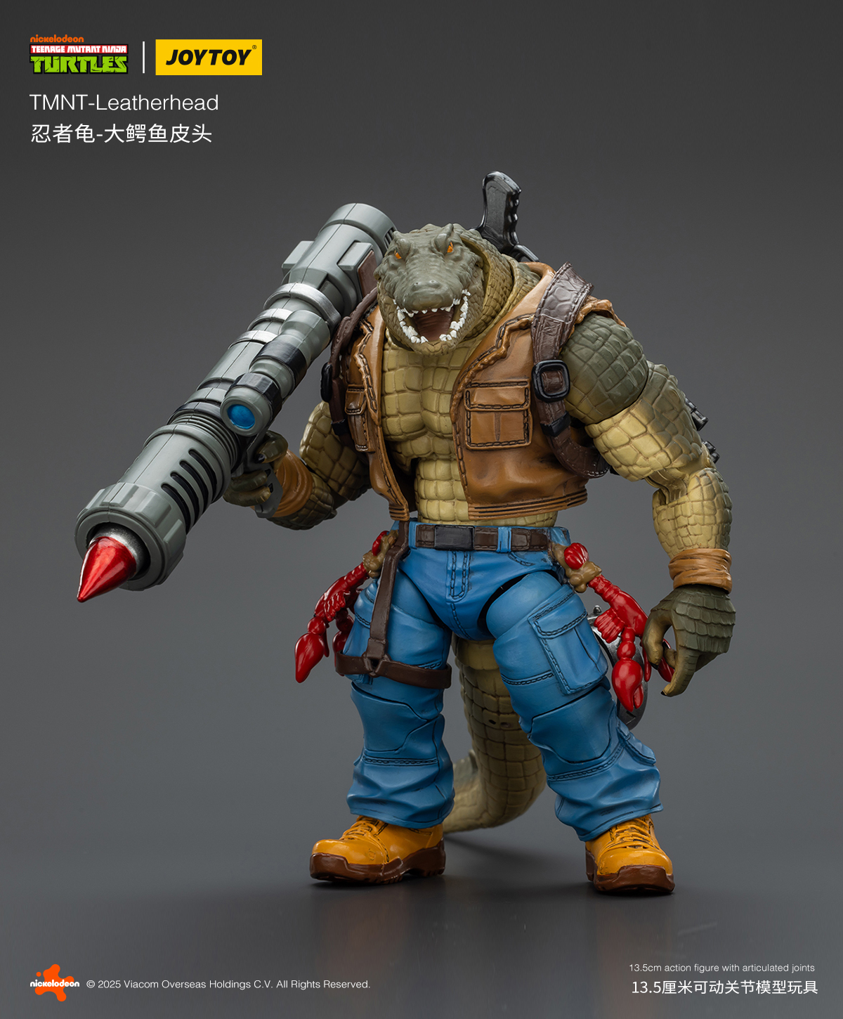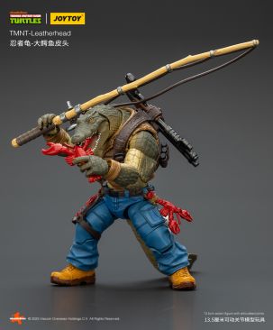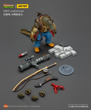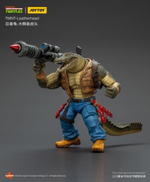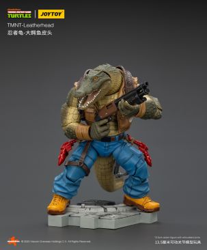 Joy Toy has revealed two upcoming Teenage Mutant Ninja Turtles 1/18 scale action figures. Their latest additions to the line are Leatherhead and Metalhead.The figures stand approximately 4″ tall. Leatherhead will include interchangeable hands, a bazooka with missile, a shotgun, a fishing pole, and a display stand. Metalhead includes interchangeable hands, a swap out drill hand, a turtle drone, firing missiles, and a display stand.
