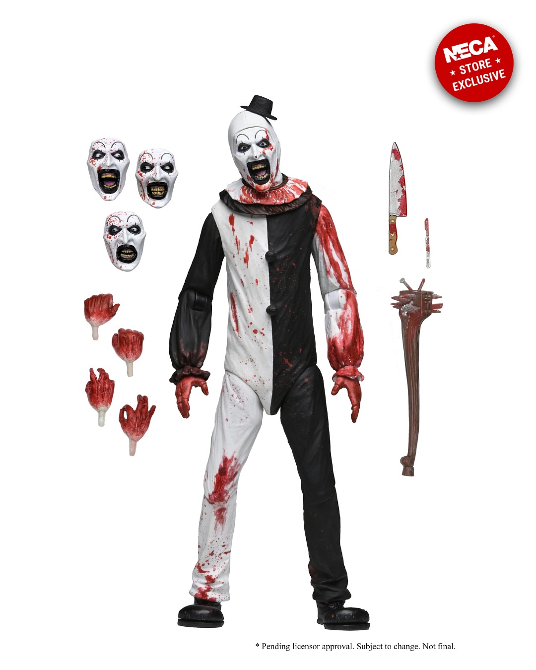 NECA is releasing a Bloody Art The Clown 1/4 Scale Figure as a NECA Store Exclusive. The figure is based on the movie Terrifier. It includes four interchangeable faces, a few swap out hands, and an assortment of weapons. Pre-orders will be available beginning at 2:00 PM EST today, with the figure due to ship out in the Fourth Quarter of 2026.