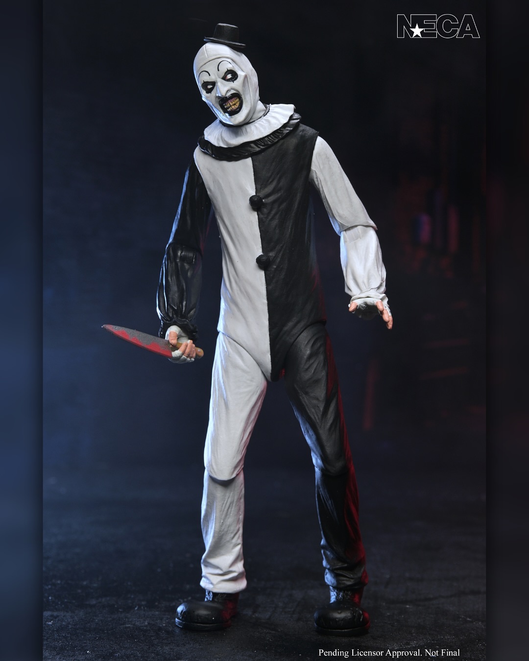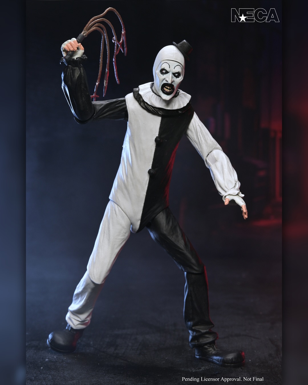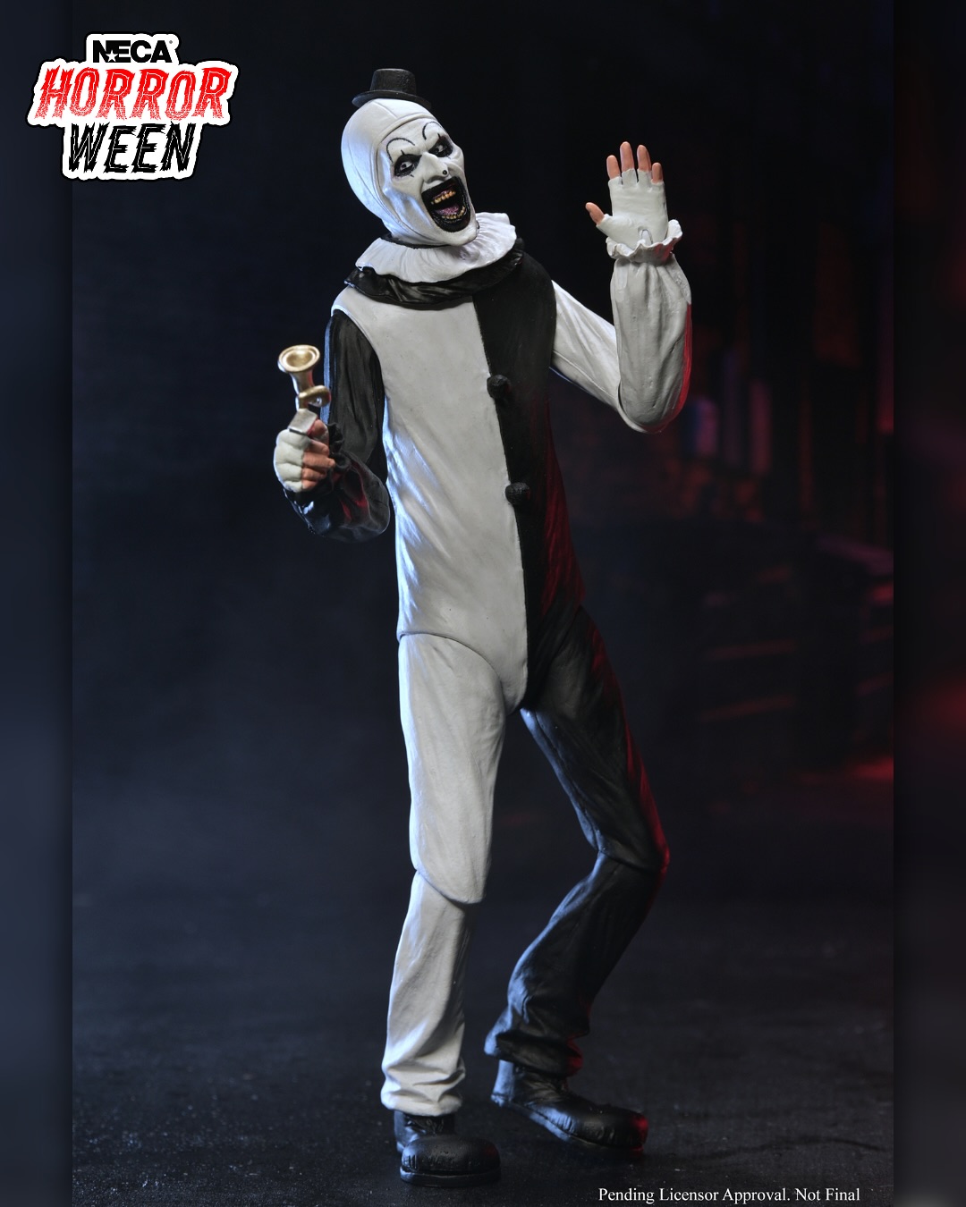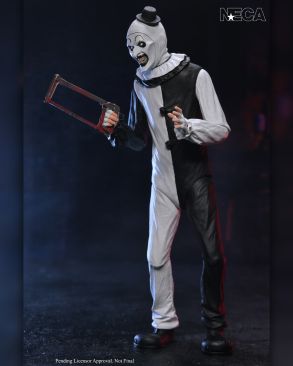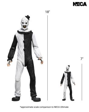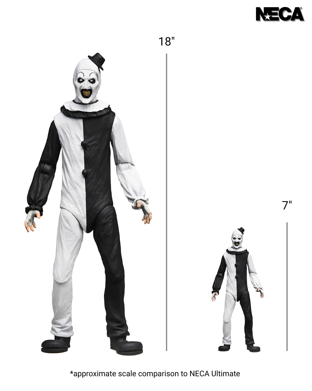 From Damien Leone’s hit Terrifier films comes the iconic Art the Clown, now joining NECA’s line of quarter-scale horror figures! Standing over 18 inches tall, this fully articulated Art the Clown captures the nightmarish essence of the new horror icon with chilling accuracy. Art comes equipped with a gruesome arsenal of bloody weapons and accessories, including a kitchen knife, clown horn, hacksaw, and flail. Customize the mayhem with interchangeable hands and faceplates, each depicting a different maniacal expression to bring his disturbing personality to life. Presented in collector-friendly window box packaging, this figure is a must-have centerpiece for any horror fan’s collection!