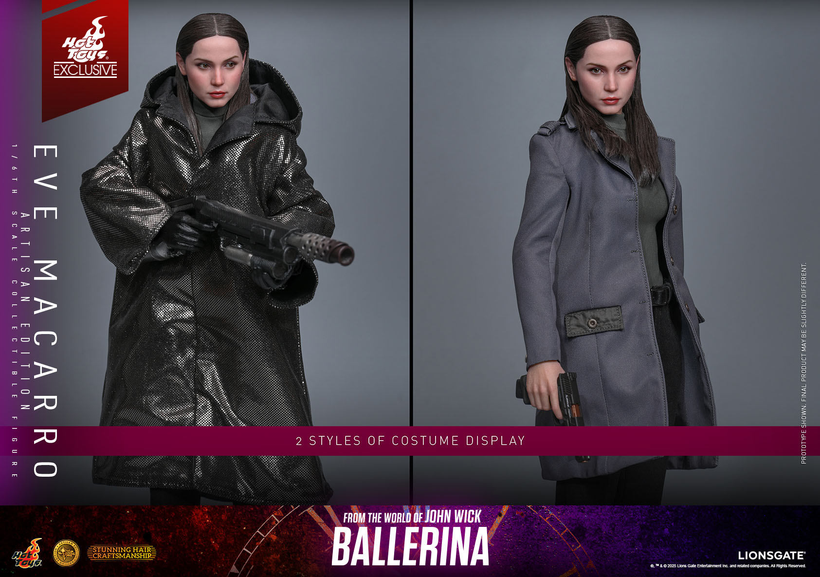 Set in the same film universe as John Wick, Ballerina starred Ana de Armas as a dancer turned assassin named Eve Macarro. Hot Toys is releasing a new Eve Macarro 1/6 Scale Figure based on the movie. Eve stands at 11″ tall, with 28 points of articulation. The figure includes rooted wool hair, moveable eyes, multiple interchangeable hands, two outfits, a sword, guns, and more. Pre-orders should go live soon. It’s scheduled for release between the end of 2026 and early 2027.