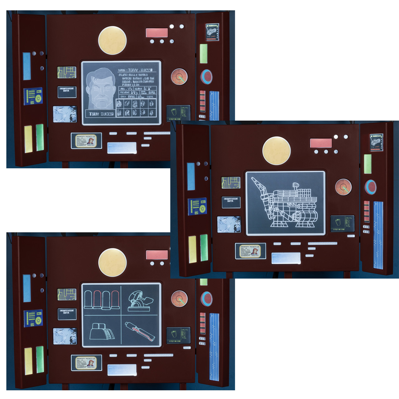 - Light-up bat computer that includes a full page of stickers to customize your Batcave display.