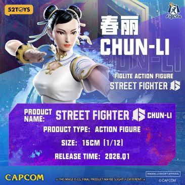 Back at Wonder Fest 2024, 52Toys displayed Street Fighter 6 action figure prototypes featuring Ryu and Chun-Li. Now, we have additional images and details as the figures have been officially revealed. They have stopped by our forums to share images and info. Their FigLite DX Series Street Fighter 6 figures will be 1/12 scale, standing at 5.9″ tall, and with over 26 points of articulation each. Ryu includes three interchangeable portraits, three sets of hands, a Hadouken effect, assorted fighting effects, and a display stand. Chun-Li includes three interchangeable portraits, five sets of swap out hands, a Lightning Kick effect, swap out skirt pieces, and a display stand.