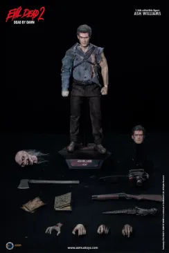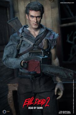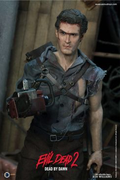 The Evil Dead II Ash Williams Sixth Scale Figure features authentic and detailed fully realistic likeness from the feature film EVIL DEAD II directed by Sam Raimi in 1987.