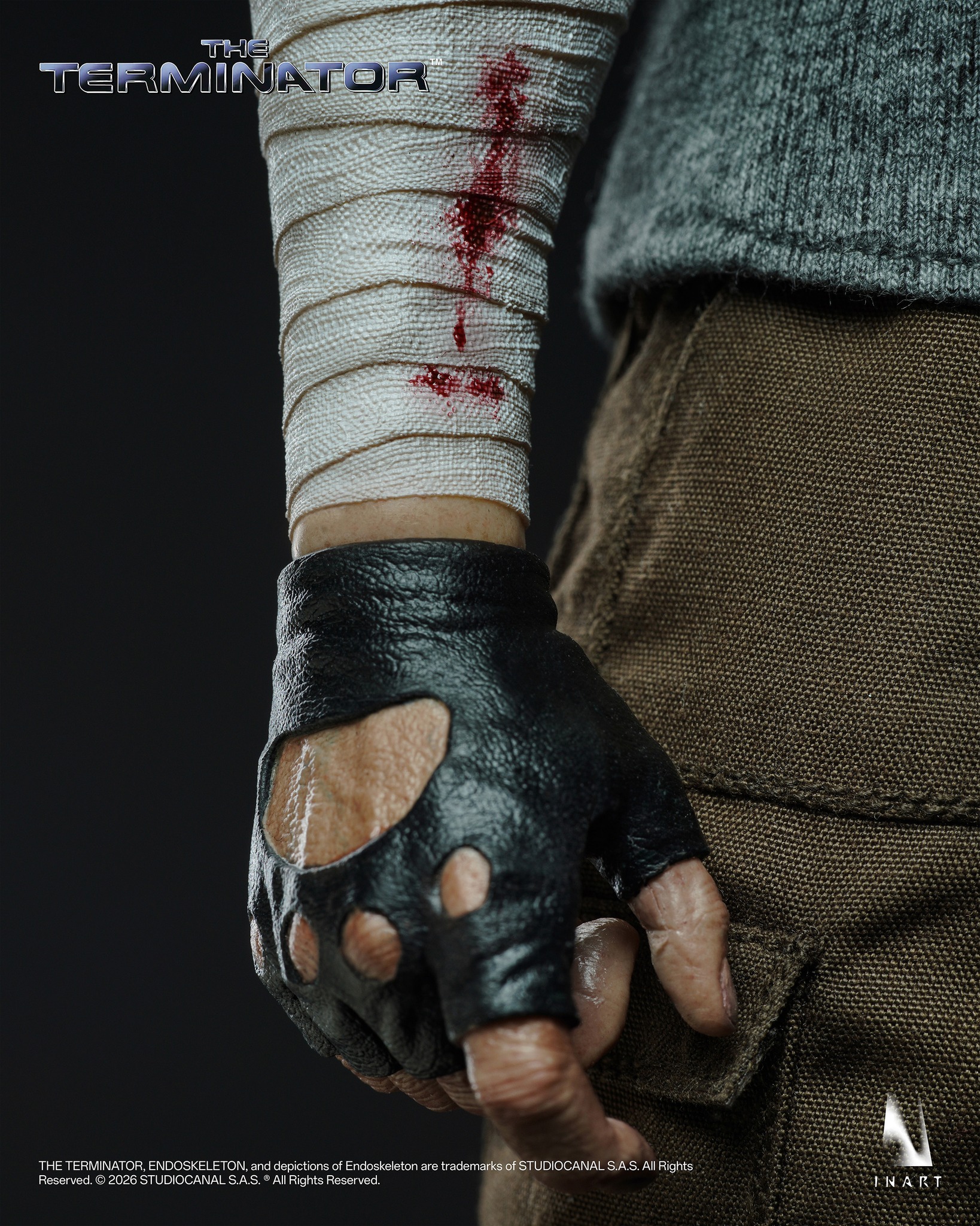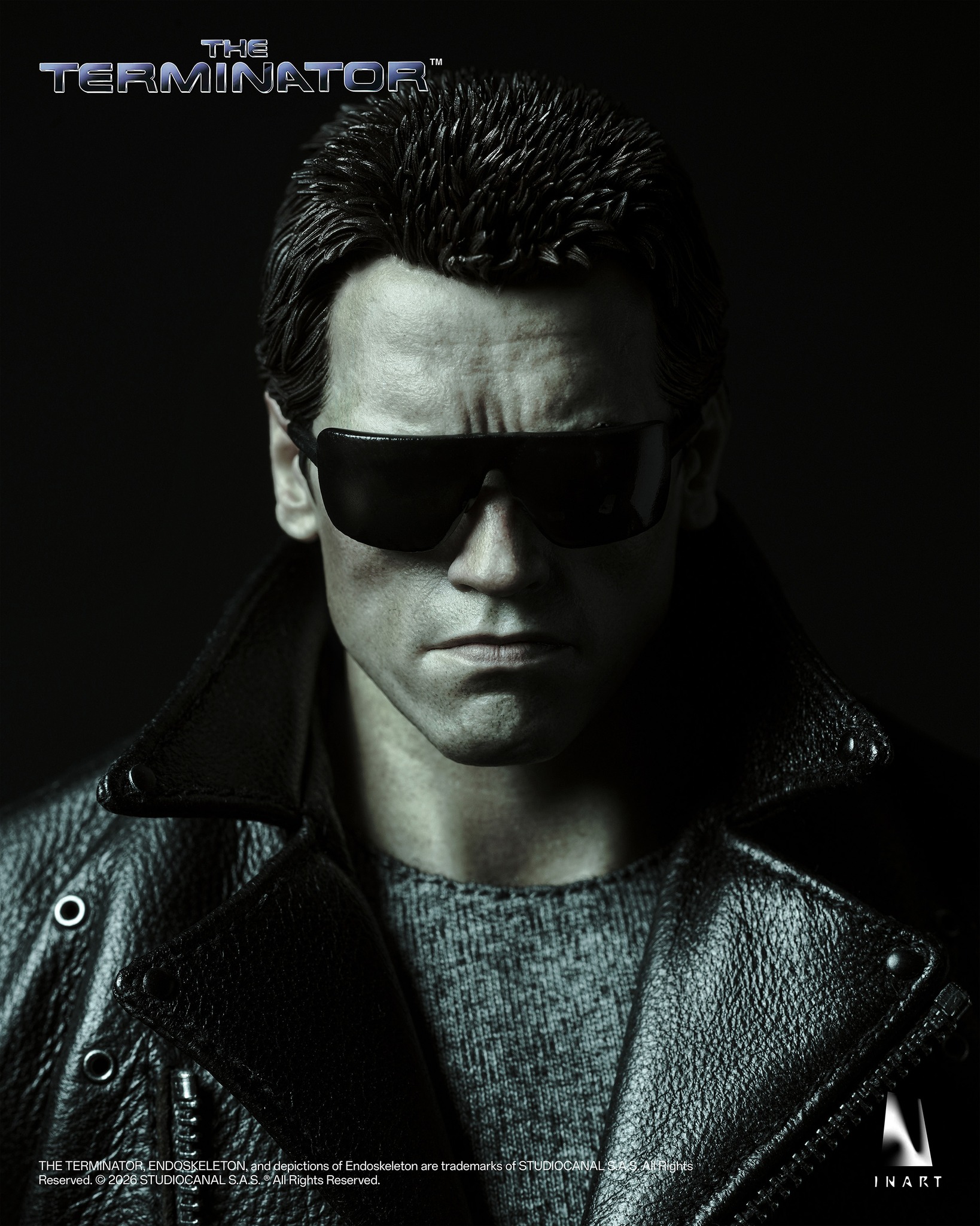 This Sixth Collectible Figure is officially licensed by STUDIOCANAL S.A.S.. The INART T-800 1/6 Collectible Figure is based on its iconic appearance from The Terminator and features INART articulated eye system. The figure faithfully recreates the T-800 look down to every unique and minute screen-accurate detail. Crafted with carefully selected genuine lambskin leather, the real leather jacket is precisely tailored with accurate proportions, while even the smallest zippers are faithfully replicated with reference to the original film props. A rich selection of interchangeable hands are included, featuring standard gloved hands, battle-damaged gloved hands, and an additional pair of fingerless gloves as seen in the promotional poster – providing for endless display possibilities.