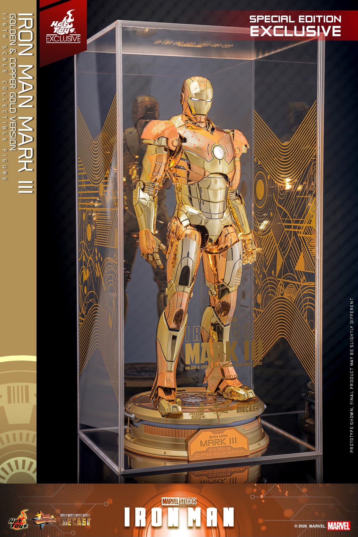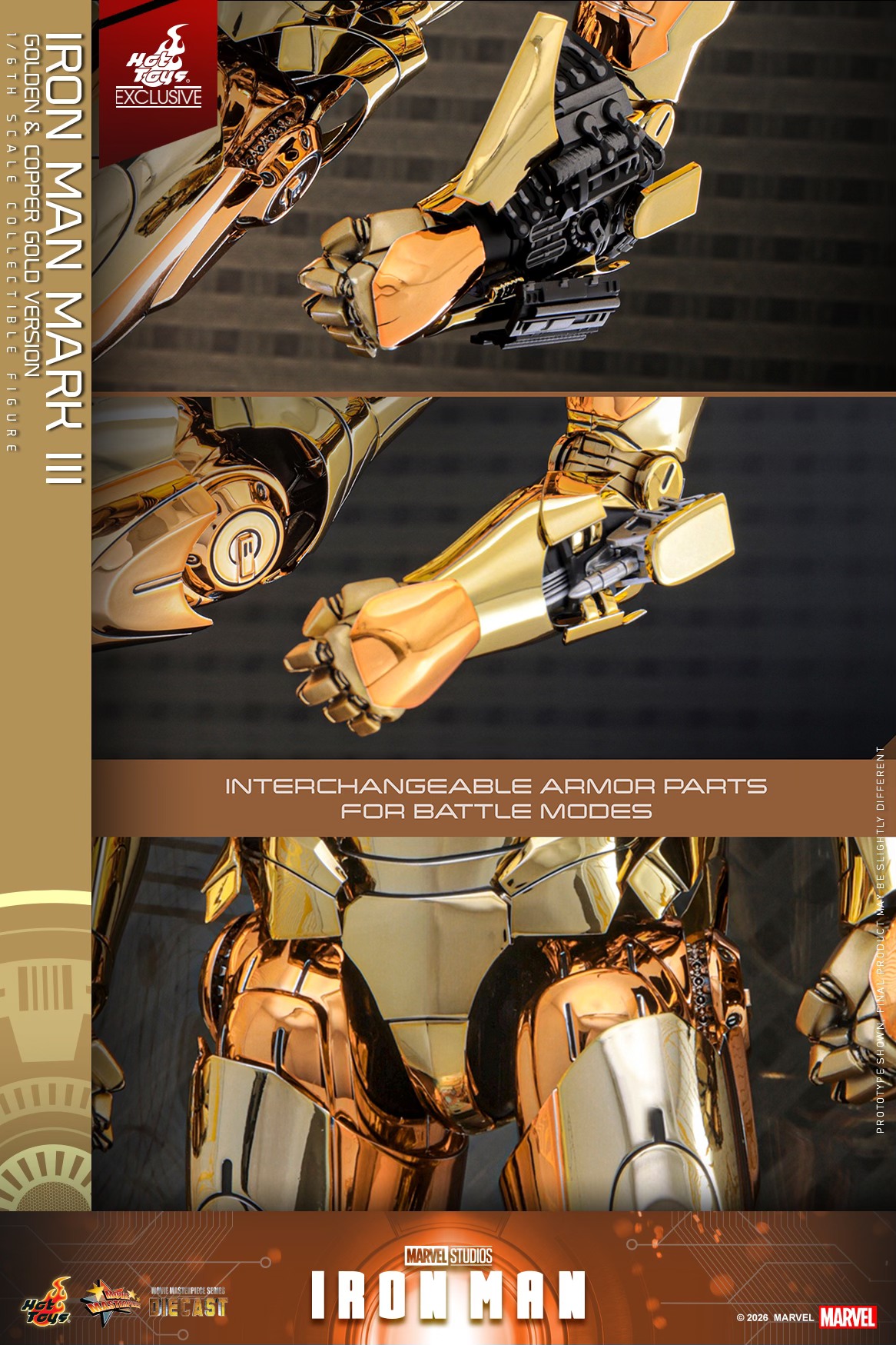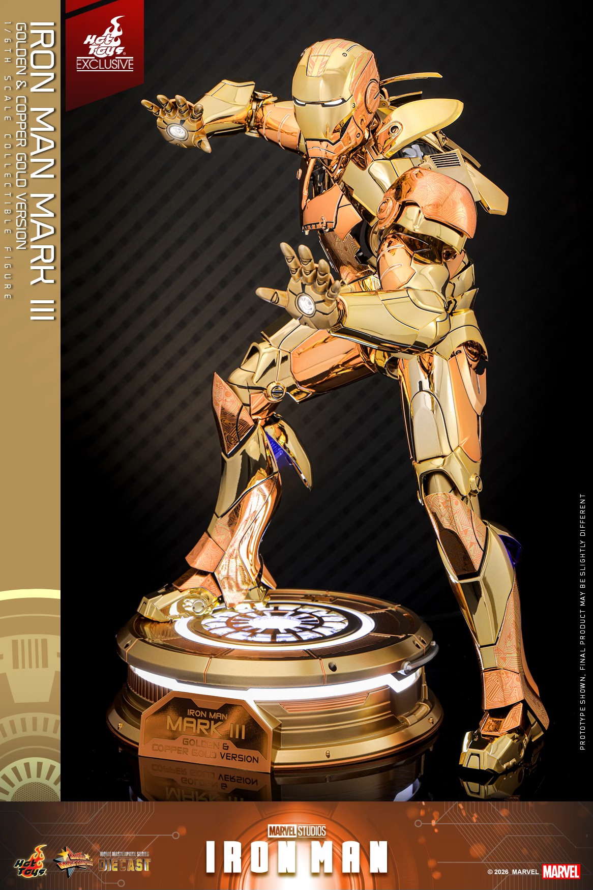 The Iron Man Mark III (Golden & Copper Gold Version) Sixth Scale Figure features: