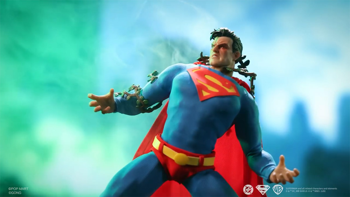 Just over a month ago, Labubu maker Pop Mart revealed their new collector focused brand called Gong. Their first big announcement was the Batman 1/12 Scale Figure, from Batman: Hush by DC Comics. Now it’s been announced that the Man of Steel will be joining the line up. They have shared a video showing their upcoming Superman 1/12 Scale Figure from Batman: Hush. Details haven’t been released at this time. But Superman looks to include multiple portraits, and assortment of swap out hands, removable Poison Ivy vines, and a wired cape. We’ll update as more details are released. Check out some screen caps below.