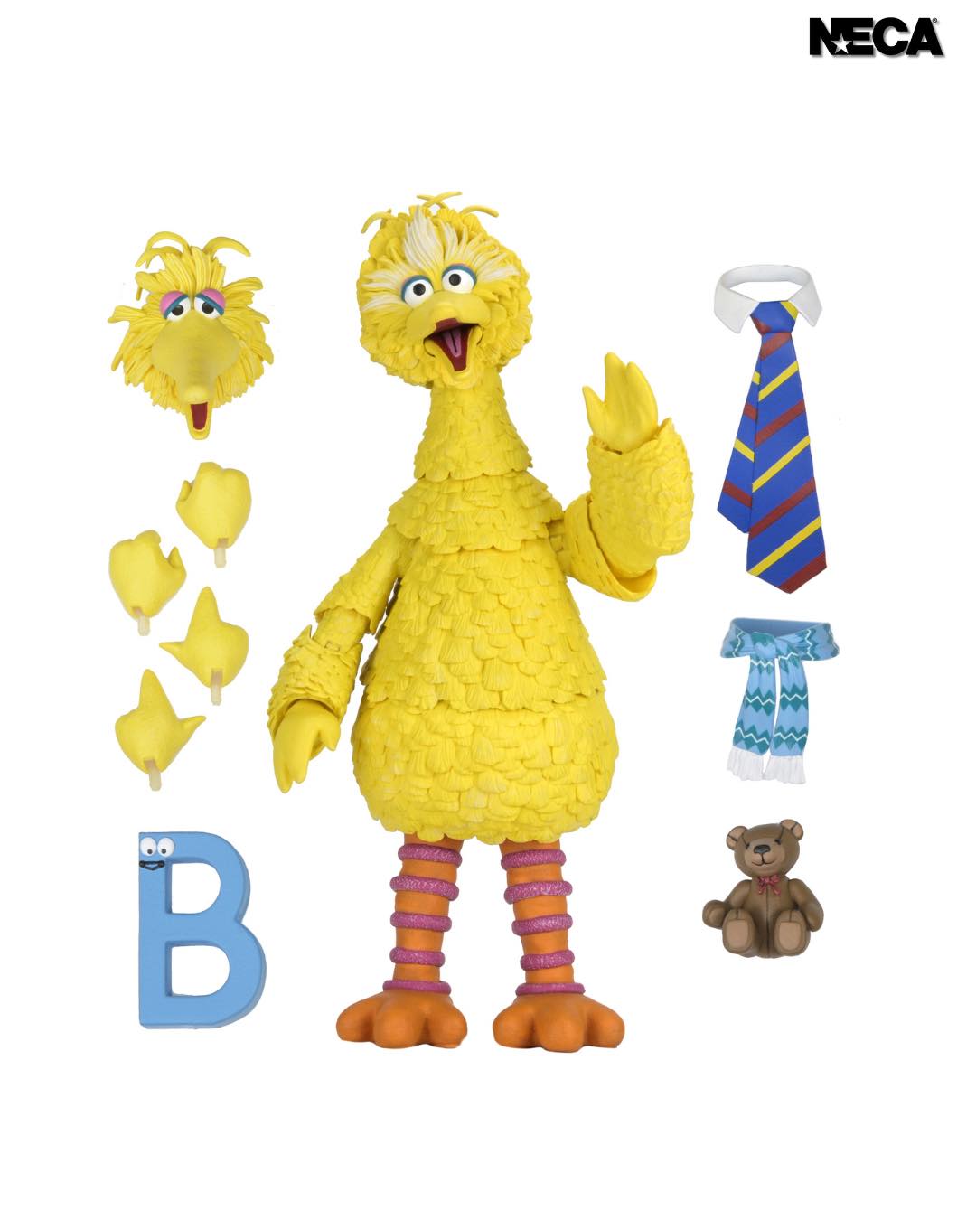 NECA has updated with images and details for their upcoming Sesame Street – Big Bird Ultimate 7″ Scale Figure. The figure includes a standard head sculpt, an interchangeable head sculpt based on the original design, multiple swap out hands, a removable necktie, a removable scarf, a teddy bear, and a big letter “B”. Pre-orders are set to go live on January 21. See more below.
