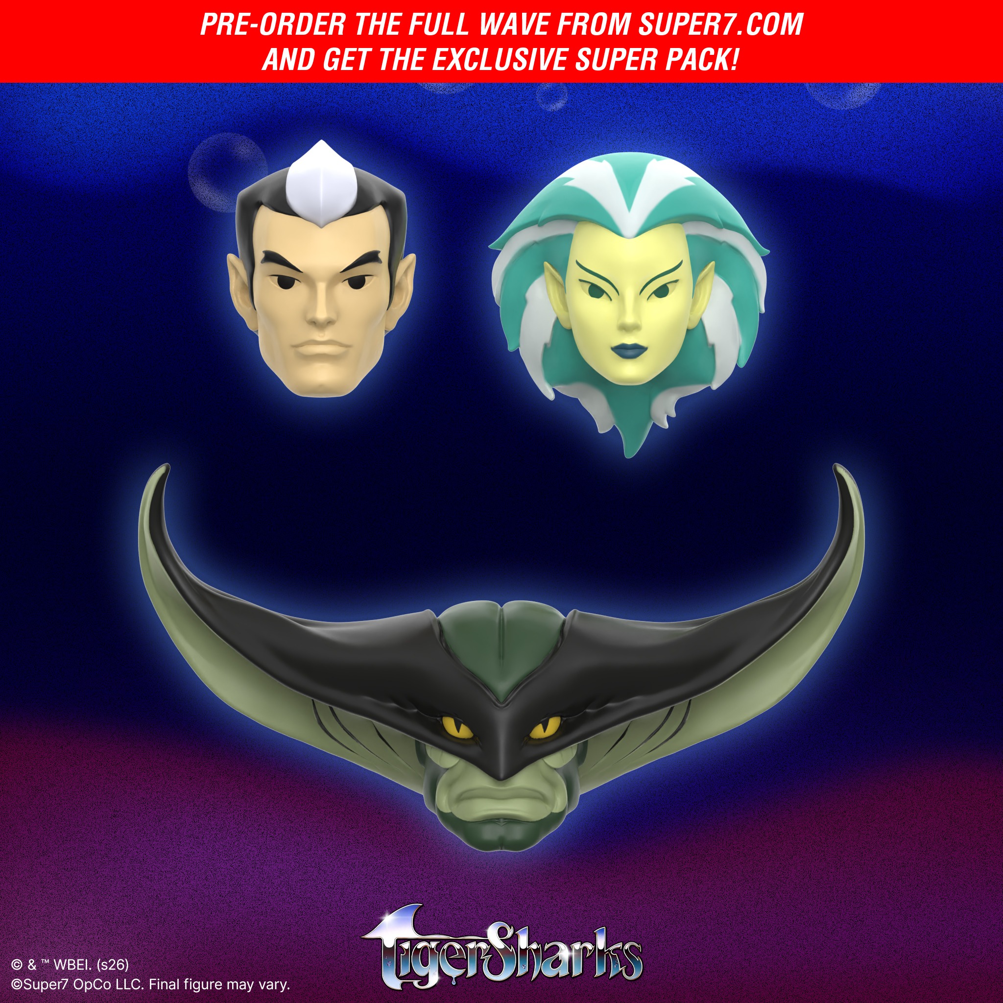 The first wave of TigerSharks Ultimates! 7″ Scale Figure features Mako, Octavia, and T-Ray. Each figure includes interchangeable portraits, a few swap out hands, and character specific accessories. They are priced at $64.99 each. If you order the complete wave directly from the Super7 Shop, you get a bonus portrait for each figure. They are due for release in November. See more below.