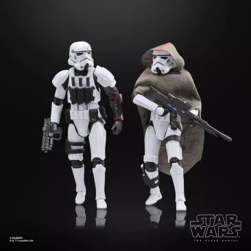 Straight from STAR WARS canon, this Black Series Misty & Cav (SCAR Squadron) 2-p ack brings two elite stormtroopers to your shelf with comic-inspired deco, premium articulation, and battlefield-ready gear. From Cav’s commanding presence to Misty’s cloaked precision, this set captures the ruthless edge of the Empire’s specialized hunters.