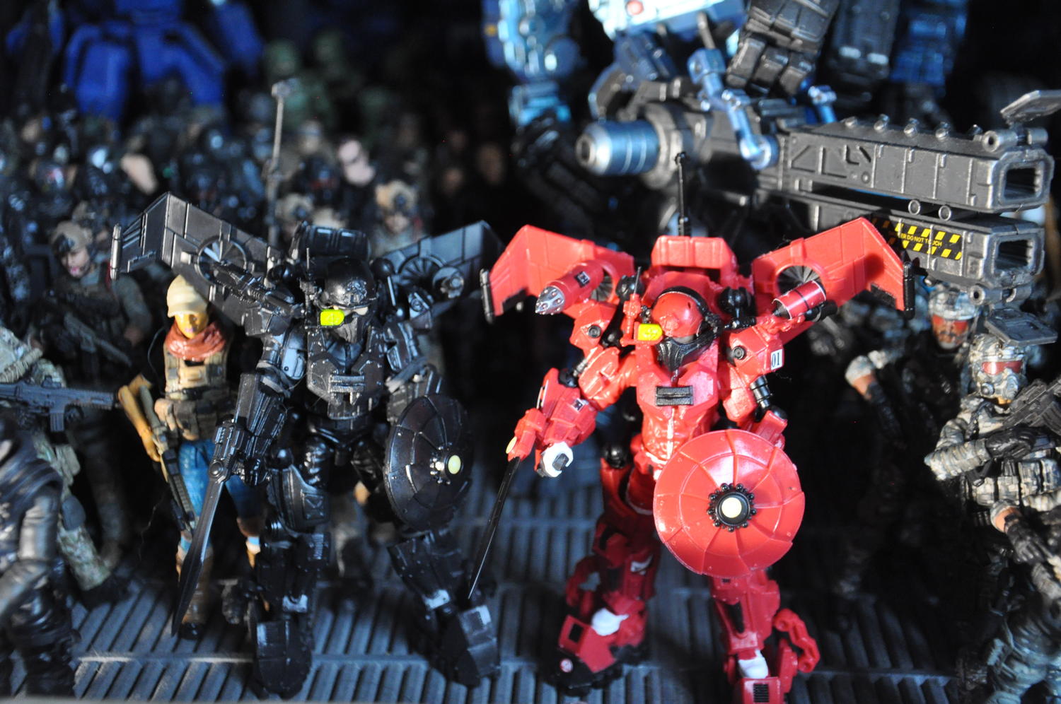 Here is a JoyToy Freeman mech next to a Takara Scopedog. I still love Marauder products. I tend to use them to build custom troops, such the Illuminati