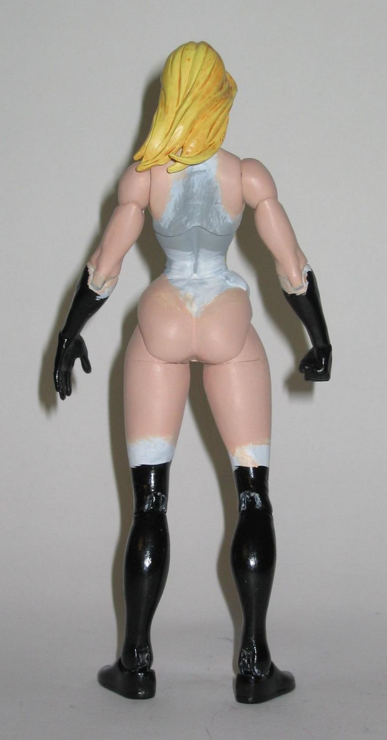 I kind of work like I have ADHD when I'm working on my customs. I have a ton more in my WIP box. I'm trying to keep focus so I can complete some more... but speaking of that habit yesterday evening I decided to do a few quick mods to one of my extra Black Cat figures. I swapped out the heels for some flats that I bought from casting cave, and I did some repainting. I painted her gloves and boots black, added some metallic highlights on the costume, dry brushed a little white on the fur, repainted the skin-tones on her chest, and did a little detail painting on the face..