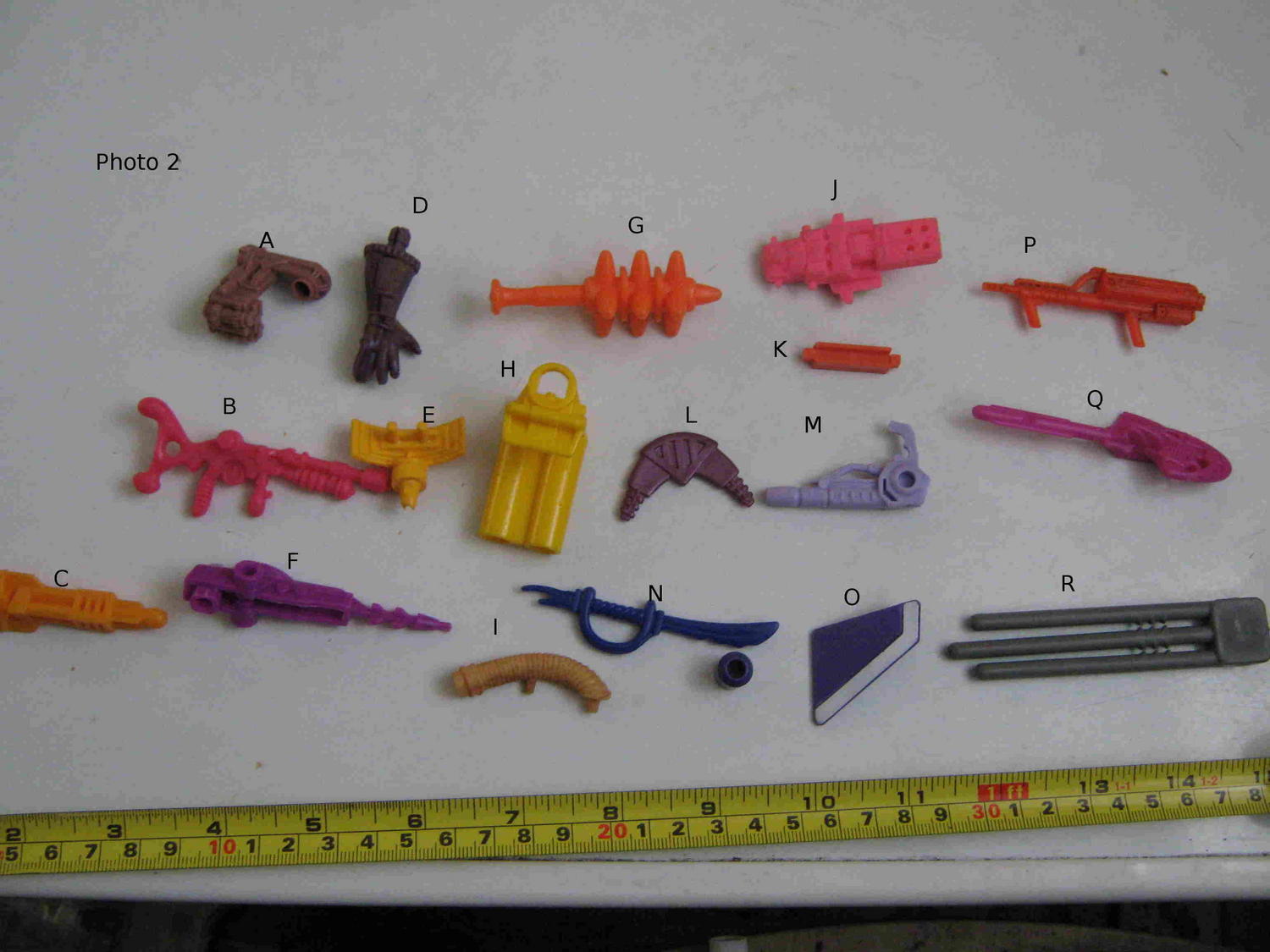 E is definitely from the Remco Mantech line, not sure which toy or figure I is from the TMNT Footski L is from Kenner Robocop Nitro Pic 3 N is from Robocop Headhunter Pic 6 K is headless MASK Calhoun Burns, Raven driver |