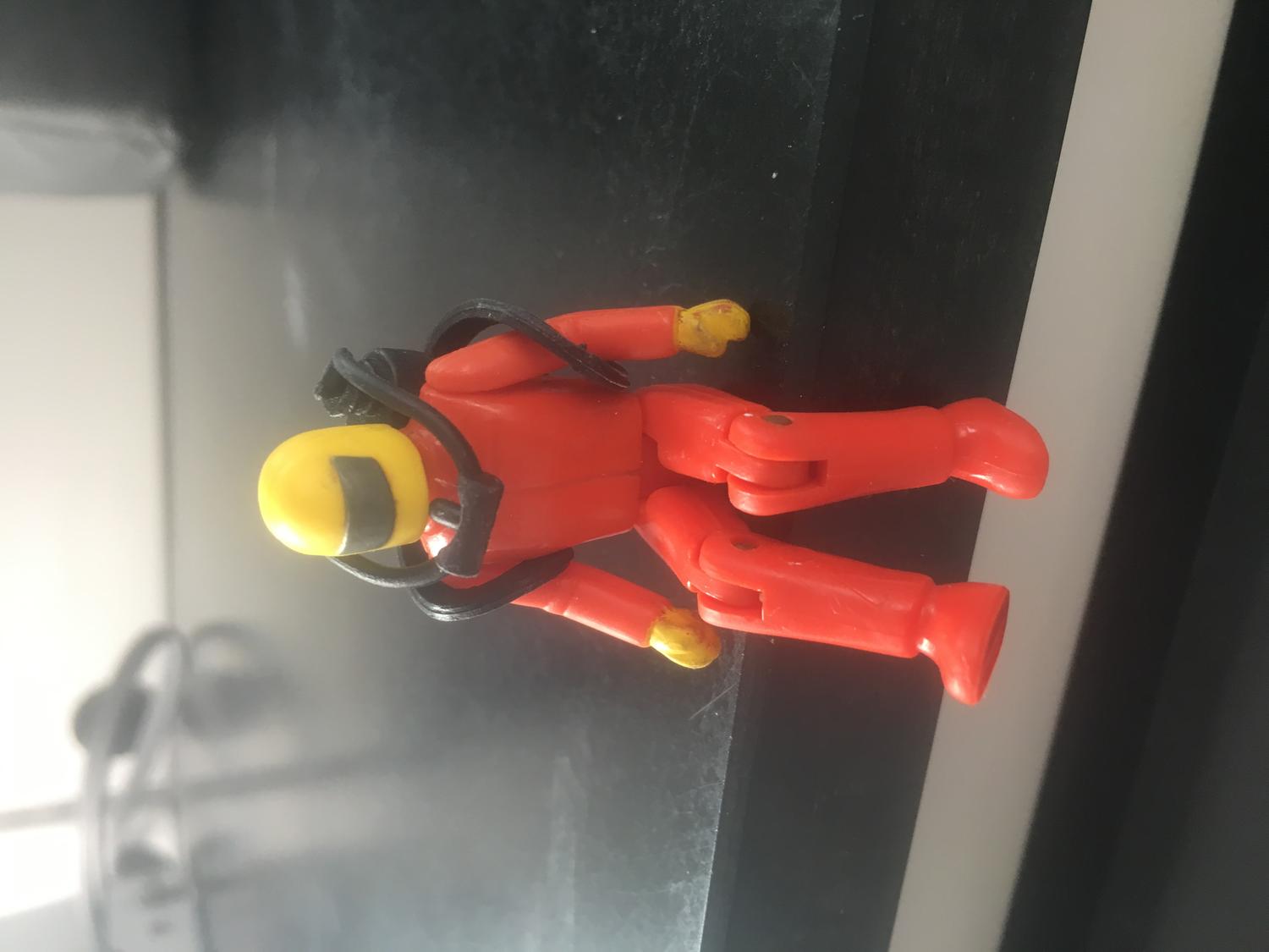Style of the body reminds me a lot of Matchbox Mobile Action Command, but the 2" size makes me think it is from a Buddy L vehicle or something--although I don't believe their figures had knee articulation. Aqualung doesn't seem to go with it.