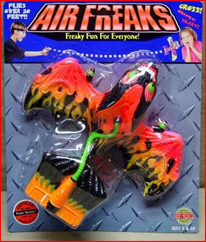 What I'm looking to identify are some plane toys from the late 90's possible early 2000's. From what I remember they were Styrofoam planes that were coated in light plastic that were cheaply made and broke instantly (at least from my experience). These are not ordinary planes however, they all had monster faces much like the madballs series. I've been trying to figure out what this line is called for about a year now And its driving me crazy! The plane I remember having was black and silver that had a skull face I think. I really want to say they were called freaky flyers or something but I don't think that's right. If anybody could shed some light and ID this line of interesting monster planes I would be very grateful. Thanks to anybody who can contribute! |