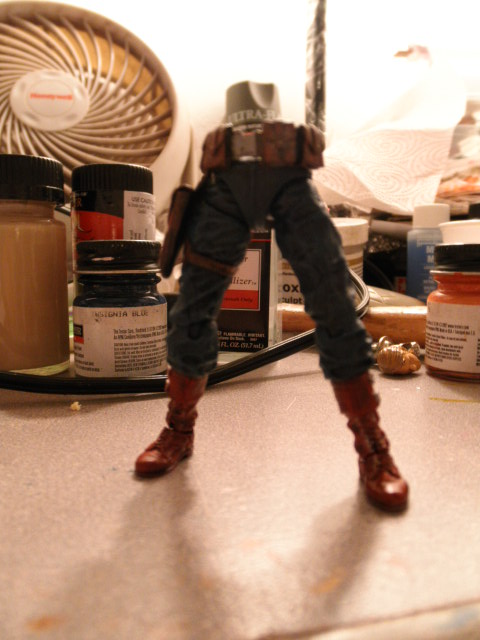 I was very happy with the results, so much so I went ahead and started painting him up. Going for a more "real world" or "GI Joe-ish" color scheme, here's where I am so far: