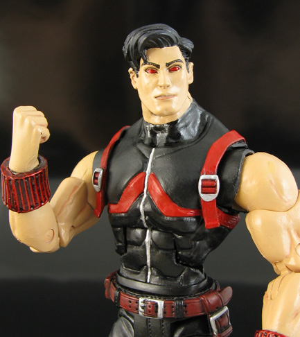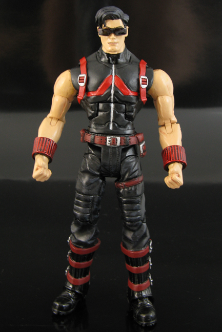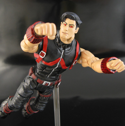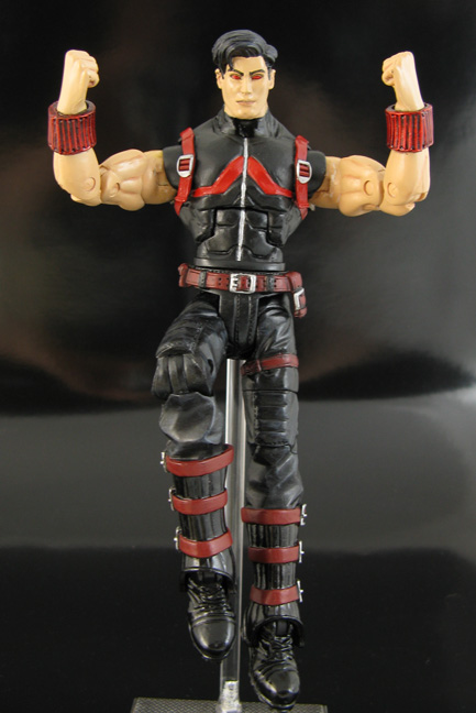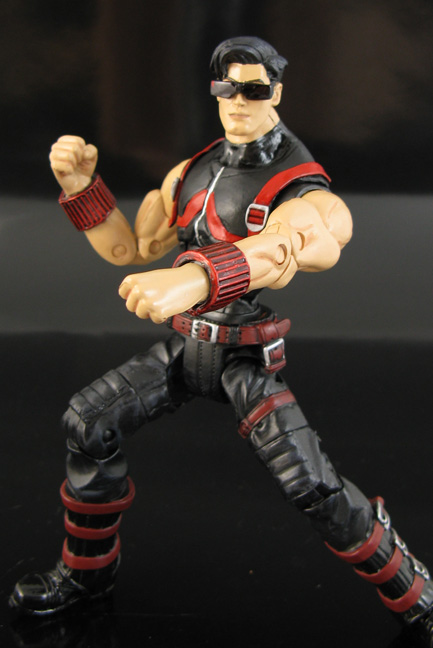 Continuing with my Avengers movie-style characters you didn't see in the film is a powerful member, Wonder Man. He was made from the upper body of a Stealth Strike Wolverine, unmasked Batman beyond head, wrestling arms, lower body of an Avatar Movie masters, and Steve Rogers boots. I added red straps to resemble a W on his chest without actually painting the letter on there seeing as nobody in the Avengers movie had that going for them. Add a flight stand and some removable shades, Wonder Man is ready for action!