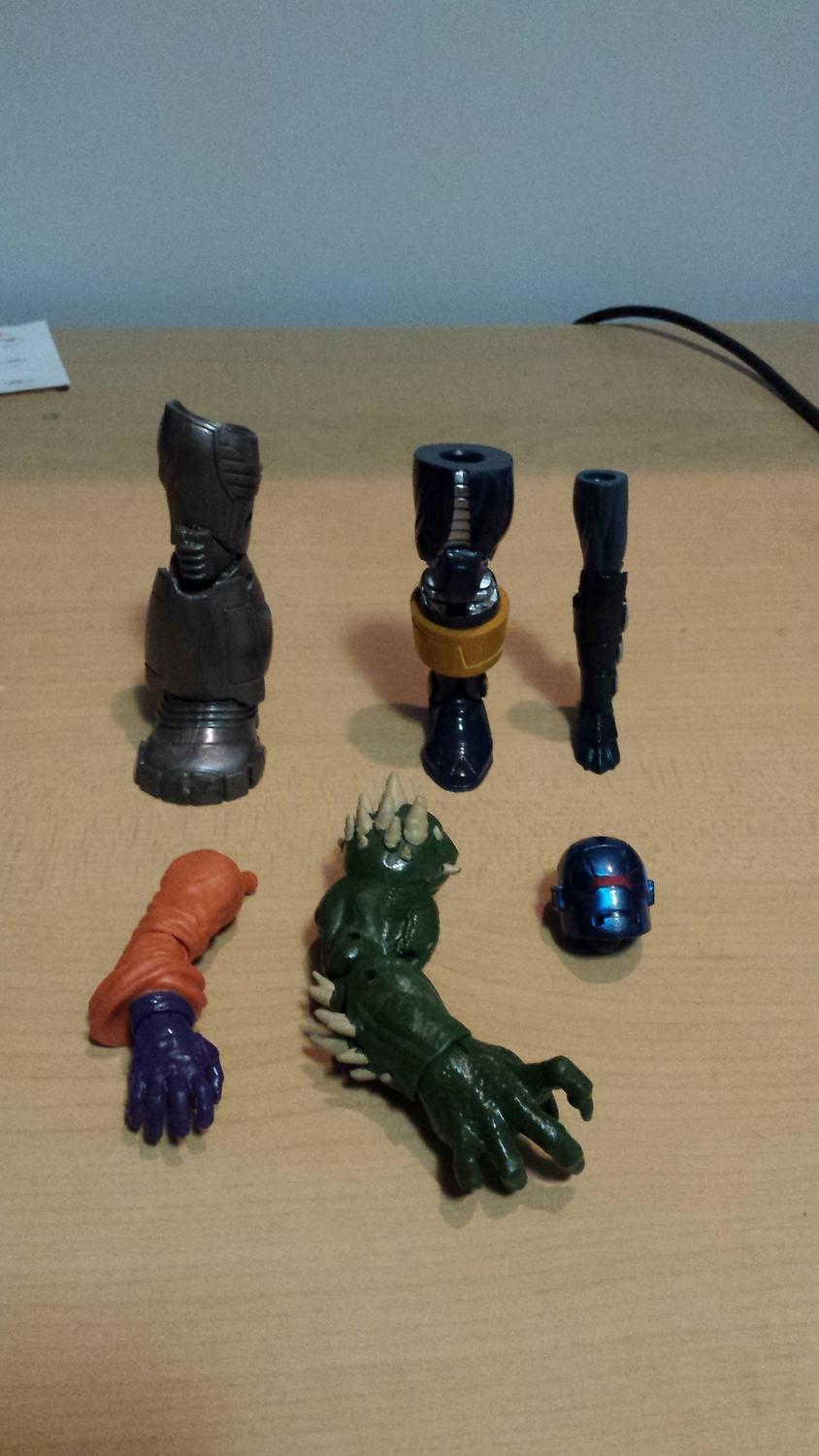 Thanos left leg Thanos right leg Thanos right arm Ultimate green goblin left arm Ultimate green goblin right arm Need: ultron and hulkbuster pieces (minus heads) |