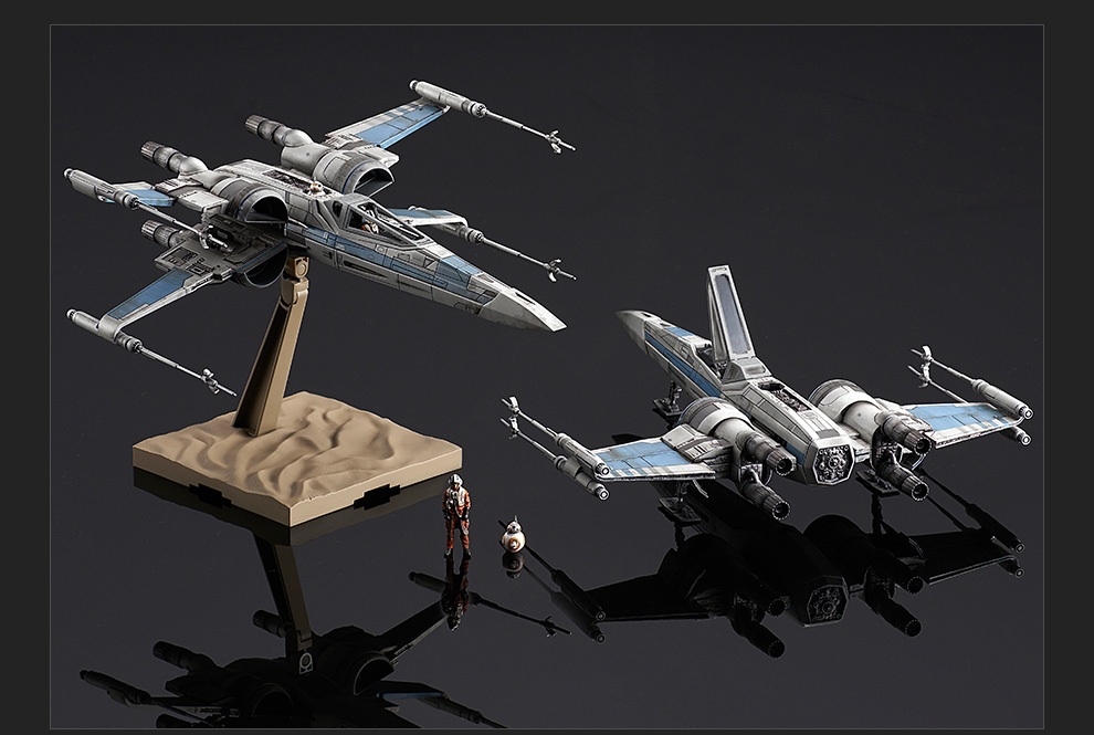 Bandai posted more pictures of the Episode 7 X-Wing on their webpage. It looks really good; definitely gonna try to pick these up ...somewhere. I really like the new looks for the Stormtrooper and X-Wing; slightly more modern, sleek updates of the classic designs.