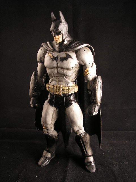 here is my take on the dark night's newest outing. I made him as he appears later on in the game, cuts, scrapes, tears and all.