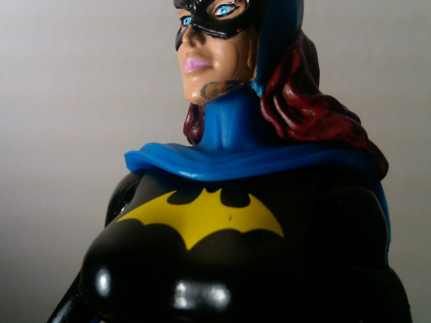![]() And on the way I found a K-Mart I've never been to and found a single Batman Legacy figure pegged up and it was Batgirl. Buuuut....it had the worst QC I've ever personally seen on any action figure! I bought it anyways 'cause I was desperate and thought I surely wouldn't find one again since my local K-Mart still hasn't stocked ANYTHING on those Batman Legacy pegs of theirs for about 4 and half weeks now. Here's a pic - her chin would be the main issue obviously (not included would be the slighty warped right arm and right leg, not to mention the stuck ab crunch with visible glossy slop - it's unstuck now of course) Also of note would be the "cut" in her bat symbol. I found some cheap skintone paint and slopped it on as best I could. That pic won't be up because I'm too ashamed of my poor painting skills - so yeah, very disappointed. Happy I found her though ![]() Oh, and a query: does she have a waist swivel?? I've tried twisting her under the impression that she had one thinking it was just stuck or something, but to no avail. |