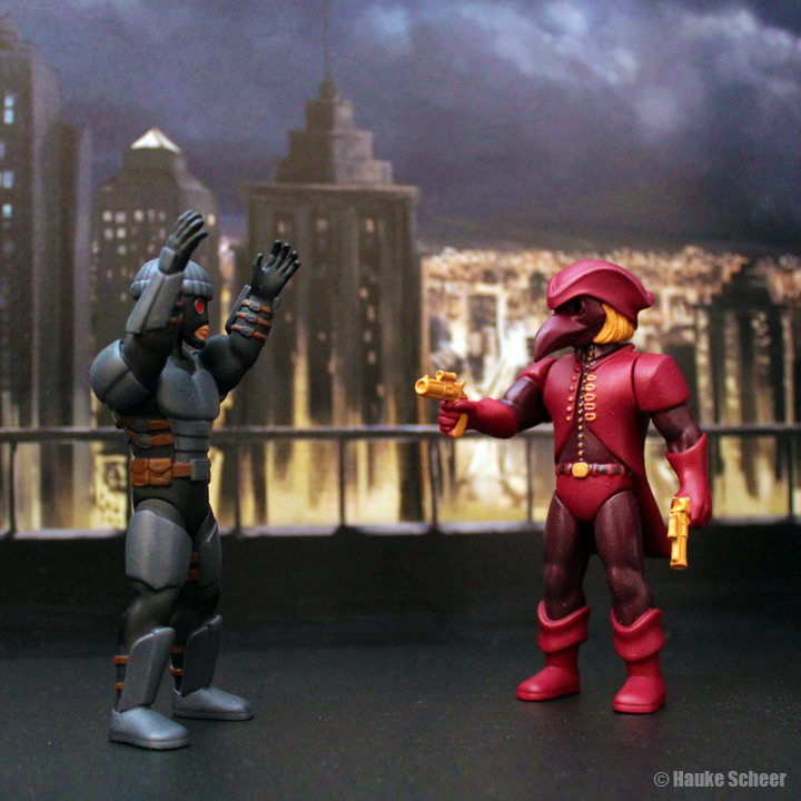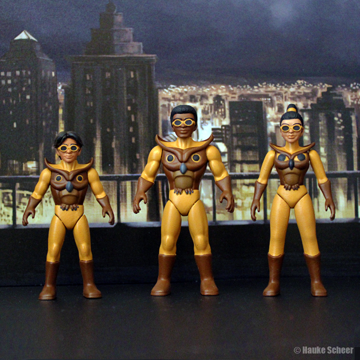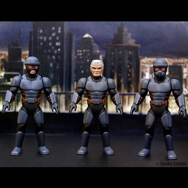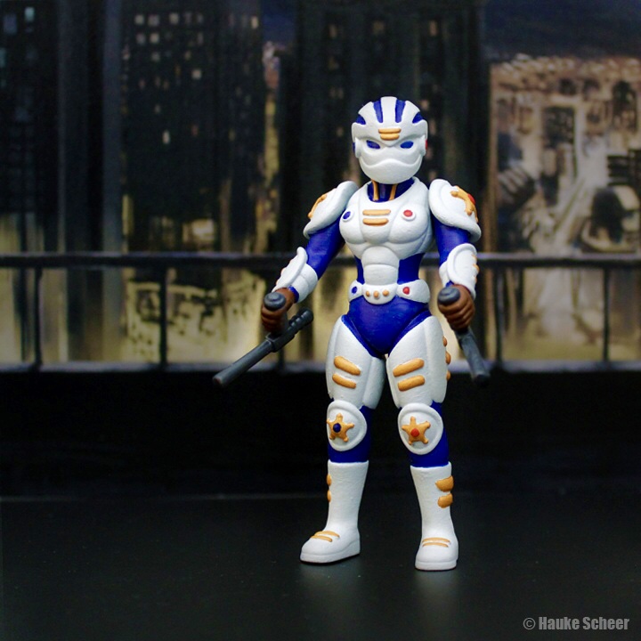 Here are some more figures from the line. I made a 70% smaller version of the main hero and a male version of the police officer.