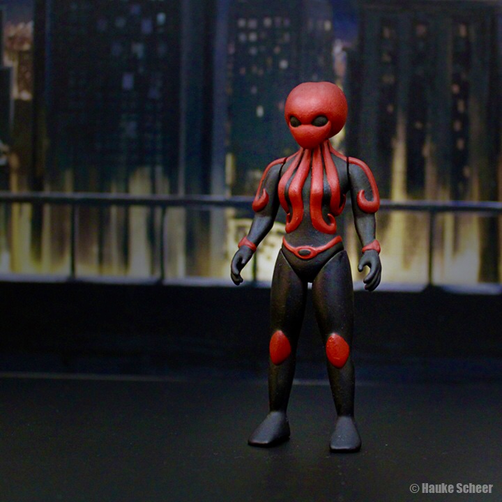 I recently updated an old line of 3D printed super hero figures. Previously most of them were only printed on my old Mojo printer in 5.5 inch scale. Now they are printed on the Form2 in 4 inch scale. The biggest change on the figures themselves are the proportions of the main hero. While before he had a more chubby sofubi style appearance he now looks more dynamic with a classic v-shaped hero torso.