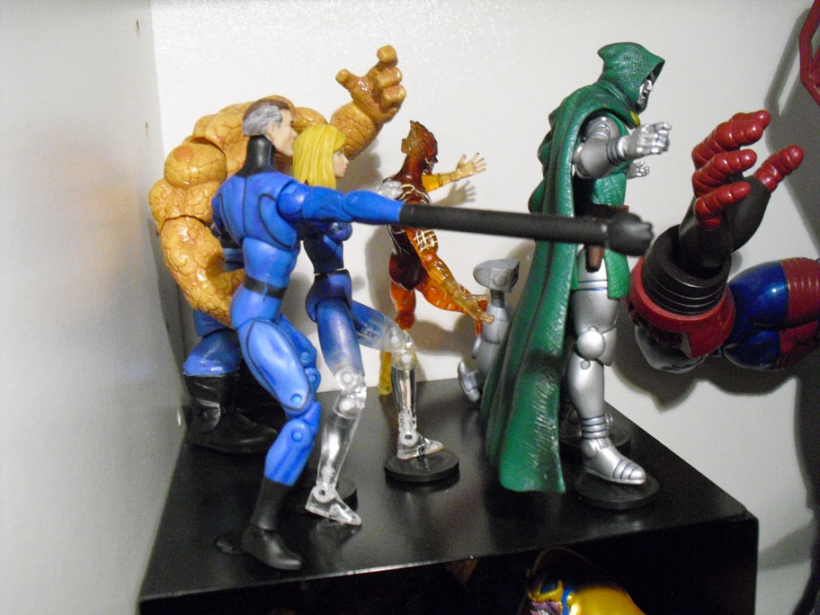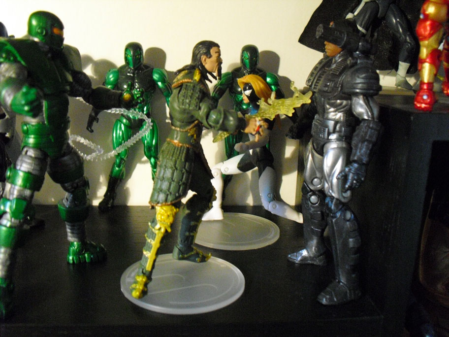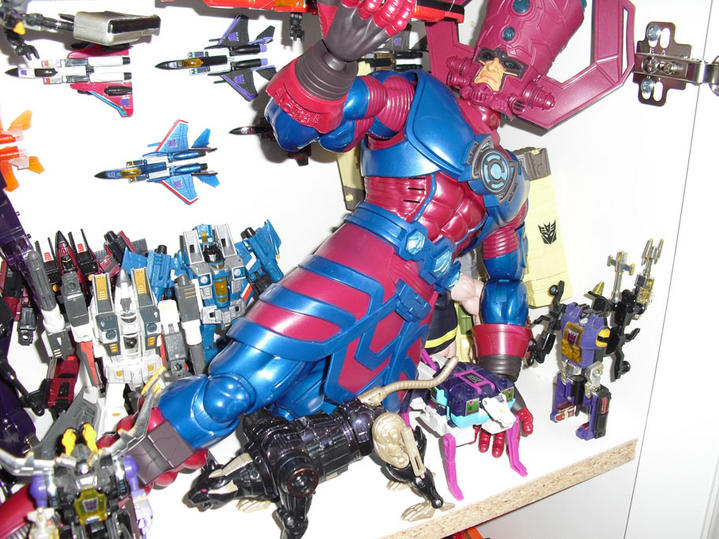 Non villains Marvel Universe: ![]() X-men and Fantastic 4 (Invisible Woman is still in BBTS pile of loot): ![]() Defenders and Wolverine associates: ![]() The Avengers: ![]() Token bit of Transformers (1984 Autobot Classics): ![]() Call of the Primatives - Trypticon and the Predacons versus Sky Lynx and the Dinobots (the Predacons are kabaya figures which sadly lacked any front legs, not quite sure what I'm going to do yet): ![]() Axis of evil (according to IGN's top 100 villains), since Mattel gave up on Infinite Heroes I've opted for DCU for Batman's villains: ![]() Metroplex (with custom parts), Omega Supreme and the WST Autobots take on the WST Decepticons: ![]() ![]()