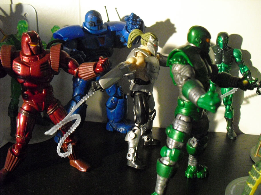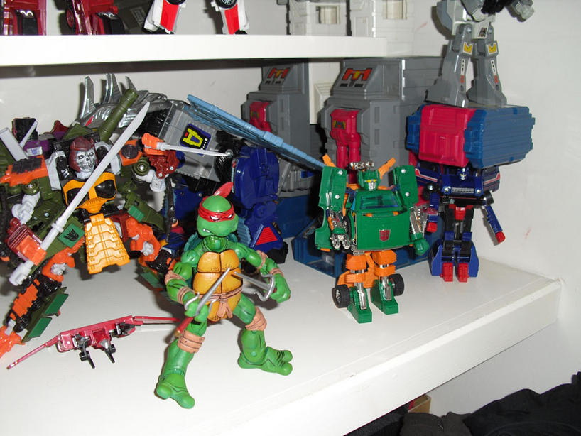 One faction is the 'Masters' - an alliance between Scorponok and Overlord. Their foot soldiers are Darkwing and Dreadwind, as well as Apeface, Snapdragon, Triggerhappy and Misfire but there's only room for their 'master partners. I've got a few Beast Wars figures but can only display a few as the 'Neo Predacons'. Cybertron Scourge is an honoury member. Fortress Maximus, Inferno, Skids, Hoist and Red Alert are the peaceful 'High Council' (from the regular g1 Dreamwave volume 2). Perceptor and Grapple will also join them when they're released. If (when?) we get the remaining members of the Marvel Illuminati I think I'll display them together, as in my mind the High Council are secretly controlling things...... Finally there is also the Chaos Trinity with Deszaras taking Bugly's place (he was possibly summoned up by some dodgy ritual). I've given Bludgeon a custom head. Oh and the Turtles. I guess they can be their own faction. Last edited by Primacron; 01-15-2011 at 12:26 PM.. |